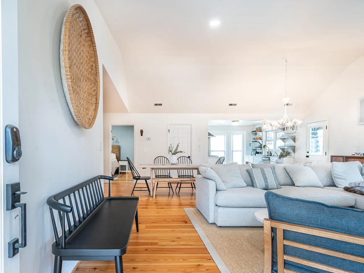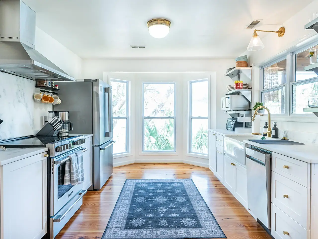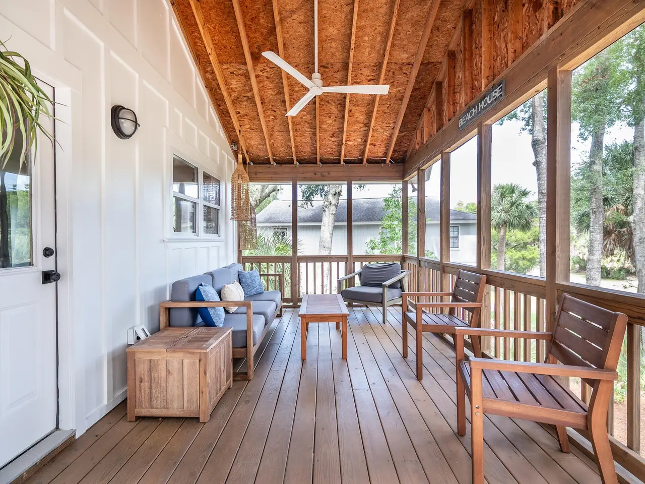 Completely renovated in 2023 with no expense spared, this retreat is truly turnkey, designed for comfort, style, and efficiency. Located in one of the island's most desirable areas and among the few properties in an X flood zone, this home is just a short walk to multiple beach accesses, Whaley's, summertime Bingo at the Lions Club, and the Marina. In its current configuration, the home comfortably sleeps 9, with 2 bedrooms and2 full baths on the main level plus an upstairs loft functioning as a third bedroom. The extensive renovation included replacing vinyl with Hardie board siding, spray foam insulation, all-new plumbing, site-finished heart pine flooring throughout, relocated kitchen (to create a larger living/entertainment space) with new stainless appliances, cabinets, natural honed counter tops, designer lighting, custom tiled bathrooms with seamless glass, and much more. Outdoor living is effortless with a full width rear porch with both open and screened areas, 2 front porches at each bedroom, and a spacious under-house retreat perfect for games and grilling. Sold furnished with high-end pieces and stocked linens, this property is truly turnkey. With just under $80k in gross rental income already booked YTD for 2025, along with its strong rental history, energy-efficient upgrades, and prime location, 3115 Myrtle St is ready to enjoy as a family retreat or immediate income-producing investment.