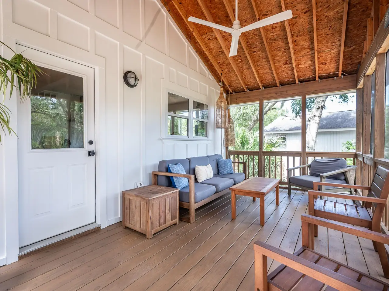 Completely renovated in 2023 with no expense spared, this retreat is truly turnkey, designed for comfort, style, and efficiency. Located in one of the island's most desirable areas and among the few properties in an X flood zone, this home is just a short walk to multiple beach accesses, Whaley's, summertime Bingo at the Lions Club, and the Marina. In its current configuration, the home comfortably sleeps 9, with 2 bedrooms and2 full baths on the main level plus an upstairs loft functioning as a third bedroom. The extensive renovation included replacing vinyl with Hardie board siding, spray foam insulation, all-new plumbing, site-finished heart pine flooring throughout, relocated kitchen (to create a larger living/entertainment space) with new stainless appliances, cabinets, natural honed counter tops, designer lighting, custom tiled bathrooms with seamless glass, and much more. Outdoor living is effortless with a full width rear porch with both open and screened areas, 2 front porches at each bedroom, and a spacious under-house retreat perfect for games and grilling. Sold furnished with high-end pieces and stocked linens, this property is truly turnkey. With just under $80k in gross rental income already booked YTD for 2025, along with its strong rental history, energy-efficient upgrades, and prime location, 3115 Myrtle St is ready to enjoy as a family retreat or immediate income-producing investment.