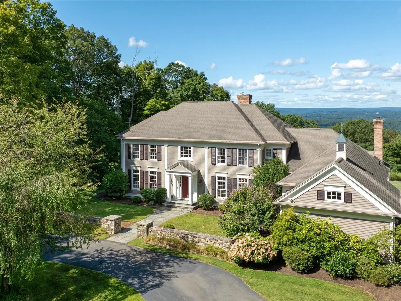 Enjoy sweeping western views of the Farmington Valley from this Jack Kemper-designed 5-bedroom Colonial perched atop Avon Mountain. Situated on over 4 acres, the property offers space for a pool, tennis, or pickleball court - all while showcasing breathtaking vistas from nearly every room. Inside, the main level features a window-filled living room with fireplace and coffered ceiling, a chef's kitchen that flows into the family room and out to the deck, a library, formal dining room, guest suite with full bath, laundry, and two half baths. The upstairs primary suite includes a sitting area, two walk-in closets, and a spa-like bath - all overlooking the views - along with three additional spacious bedrooms and a shared bath. The walk-out lower level adds 1,600+ sq. ft. of newly renovated living space: a gym, two offices, game room, new full bath, and versatile areas for recreation or relaxation. With unmatched views, thoughtful design, and prime Avon Mountain location, this home is a rare opportunity.