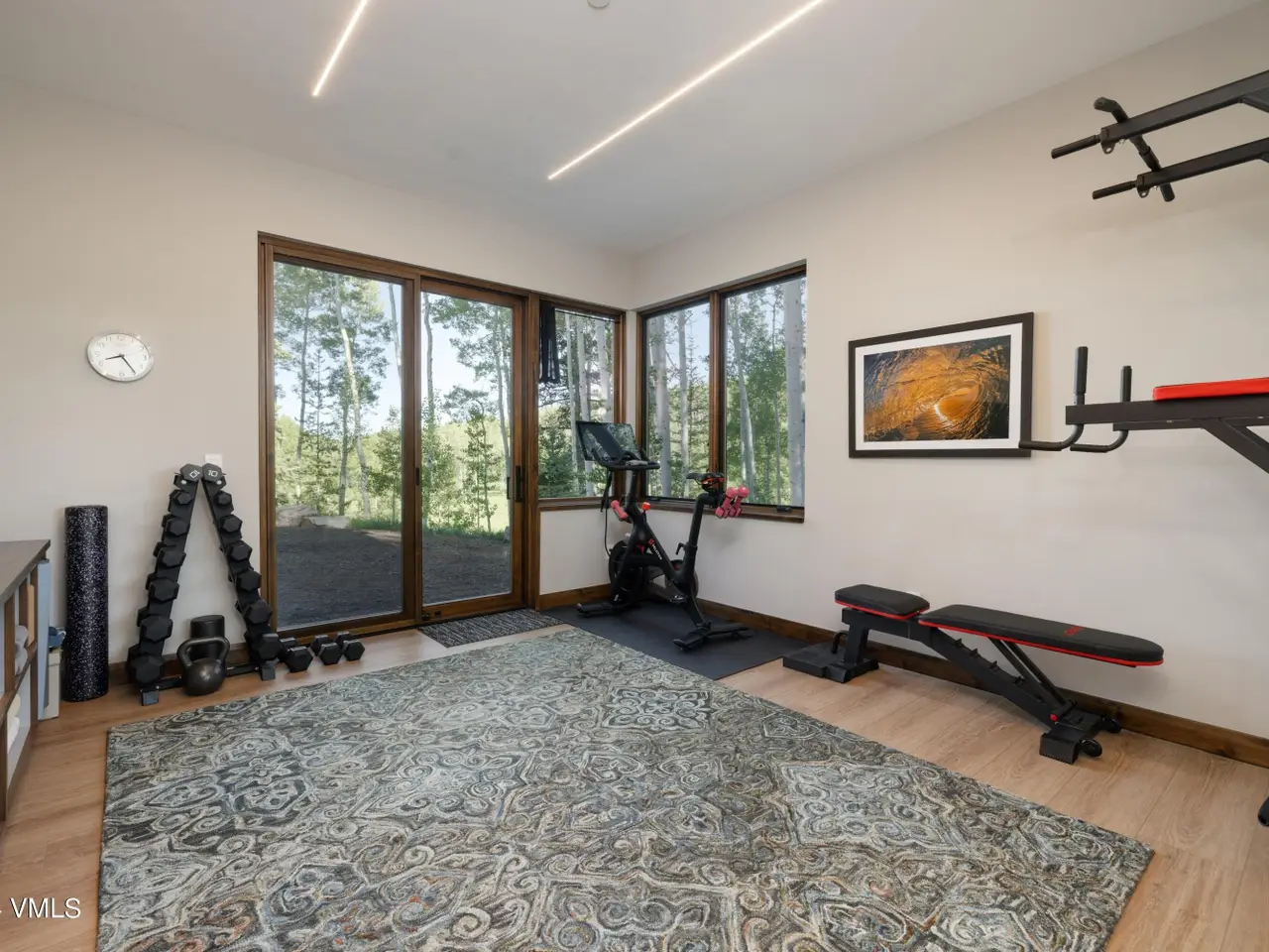 Fitness room with outdoor hot tub