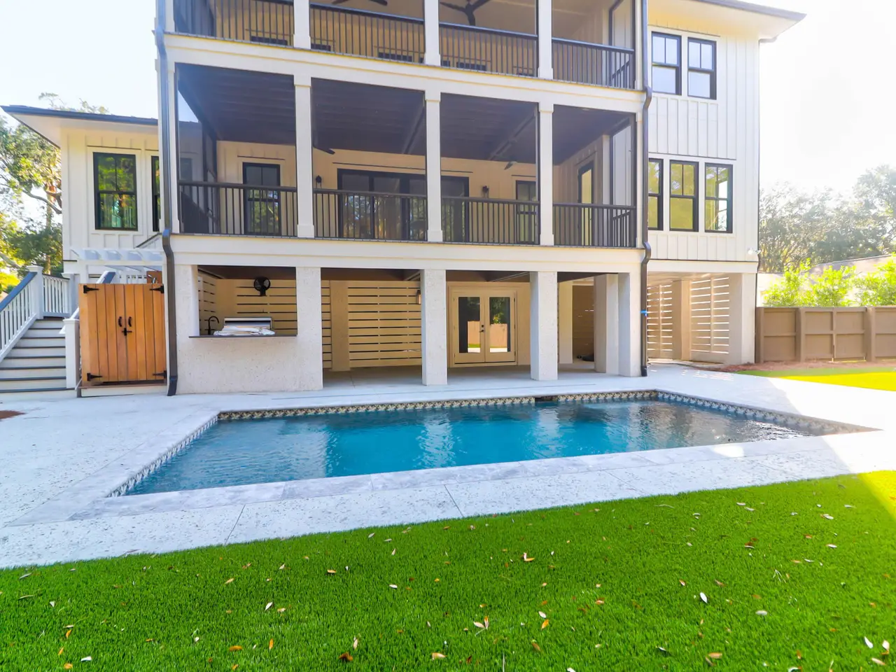 ESTIMATED COMPLETION SUMMER 2026. Seize the opportunity to own this exceptional new residence being crafted by Fox Creek Homes on DEEP WATER. Boasting approximately 3,695 SQFT of pure luxury, this structurally overbuilt masterpiece showcases meticulous attention to detail in every corner. Nestled in one of Awendaw's most desirable settings, this property offers the perfect blend of Lowcountry tranquility and convenient access to the charming coastal communities nearby. Step into elegance as you enter the 10-foot ceilings of this radiant home. The expansive great room and dazzling chef's kitchen--adorned with shiplap and oversized trim--will captivate you instantly.The kitchen, a haven for culinary enthusiasts, features white custom cabinetry, quartz countertops, a large eat-in island, and top-of-the-line appliances. The living area is graced by a gas fireplace for cozy evenings, complemented by custom built-in storage cabinetry. Open the doors to your outdoor screened-in porch, designed for effortless entertaining and relaxing while overlooking the peaceful, professionally landscaped grounds. Retreat to the owner's suite, thoughtfully appointed with a custom-built closet system and a luxurious en suite bathroom that feels like a private spa. Upstairs, you'll discover two beautifully appointed en suite bedrooms, each with a private shower, plus two additional bedrooms sharing a well-appointed bath with a shower/tub combinationproviding comfort and luxury for every lifestyle. The lower level invites you to experience the best of Lowcountry living, featuring a spacious covered patio with an outdoor kitchen and a sparkling saltwater swimming pool, set against silver travertine coping and rock salt decking. Just beyond the backyard, you'll find a private dock complete with a covered pierhead and a floating dock, offering direct access to Dupree Creekperfect for boating, fishing, launching kayaks, or simply enjoying tranquil waterfront views. 1434 Dupree Creek Drive is adorned with character throughout, including oak wood floors, custom shiplap accents, and intricate trim. Whether you're seeking a primary residence, or a second home, this is easy Lowcountry living at its finest. Don't miss your chance to make this extraordinary new construction your own. Call us today for more information.