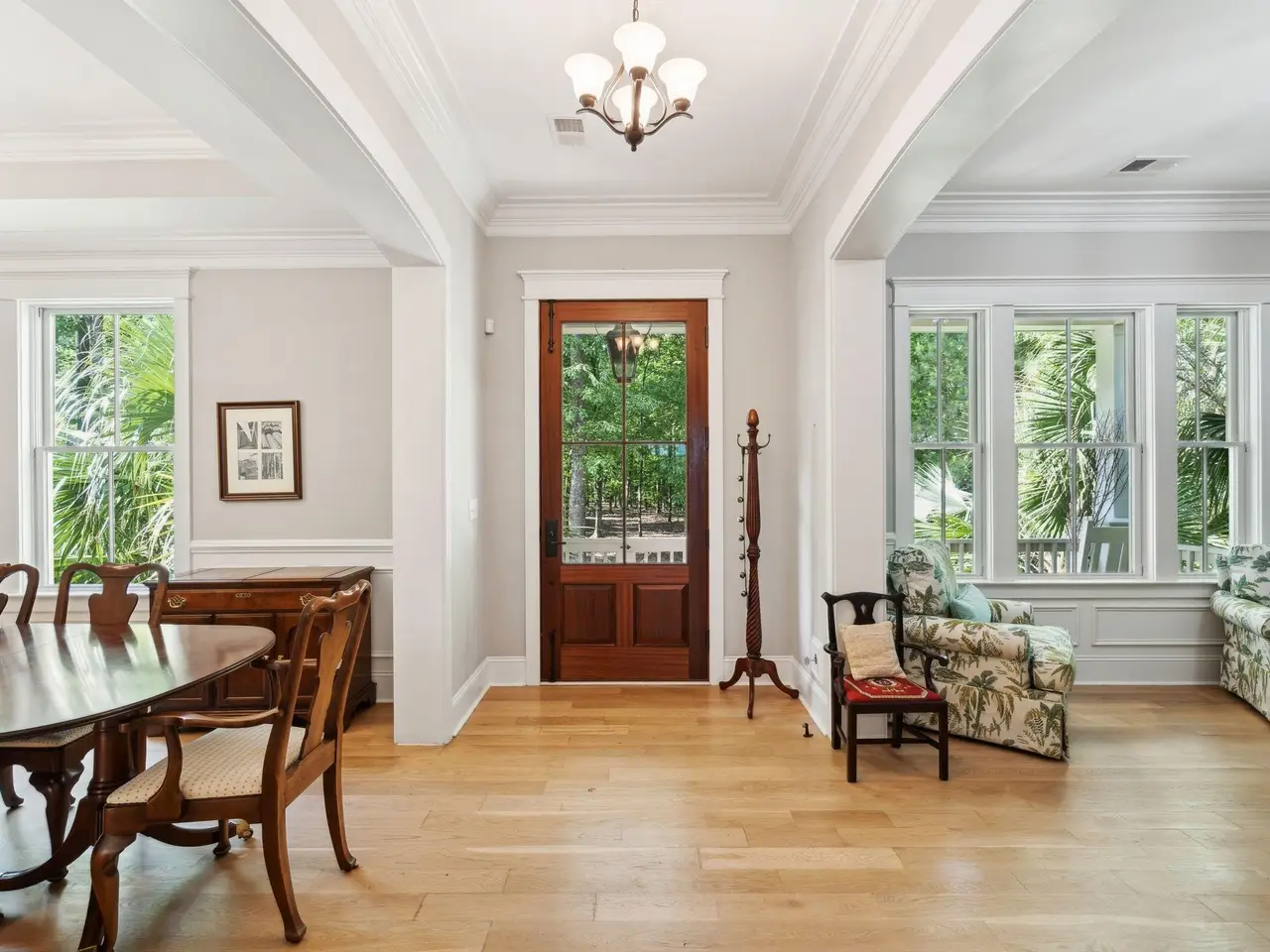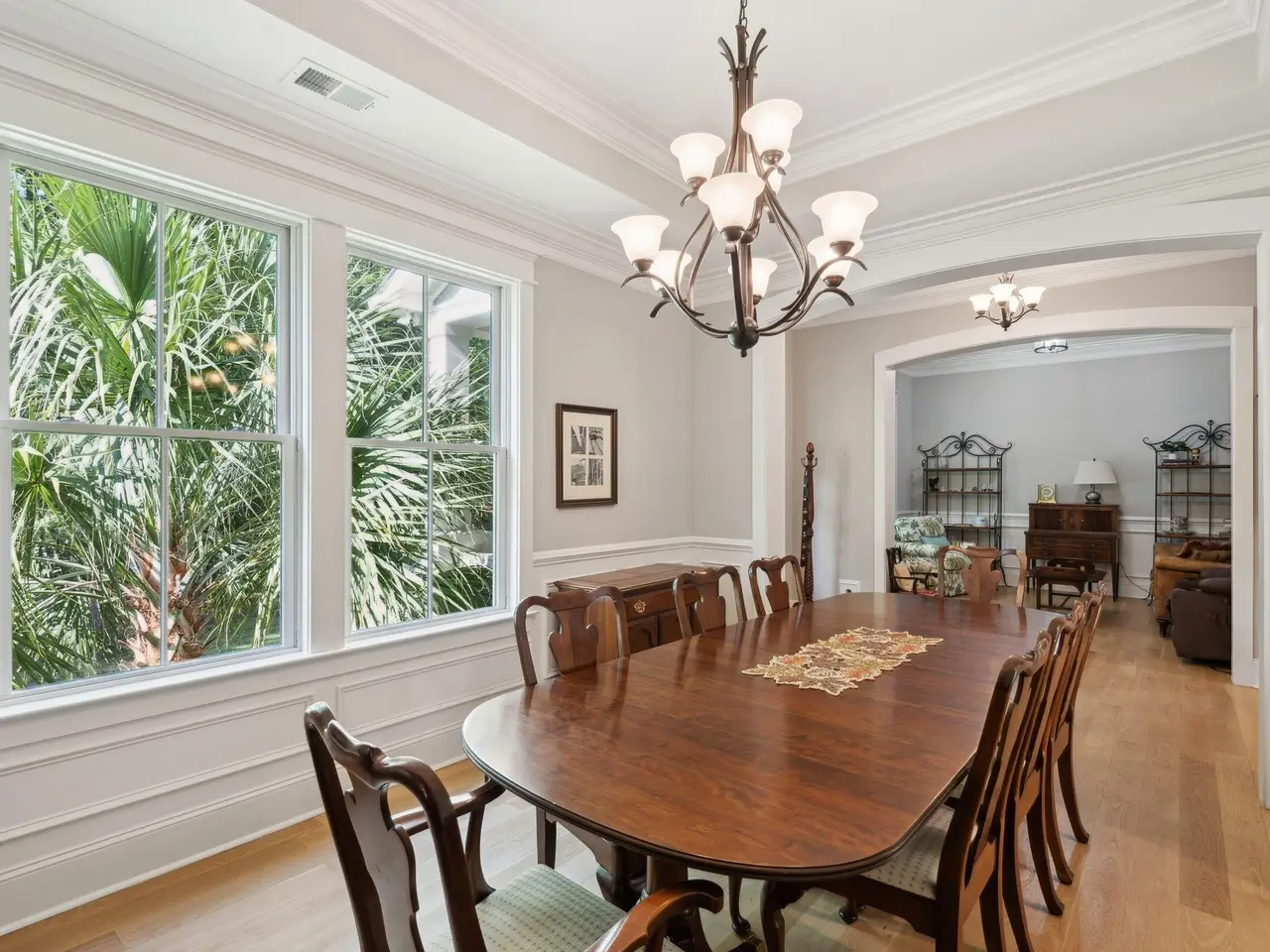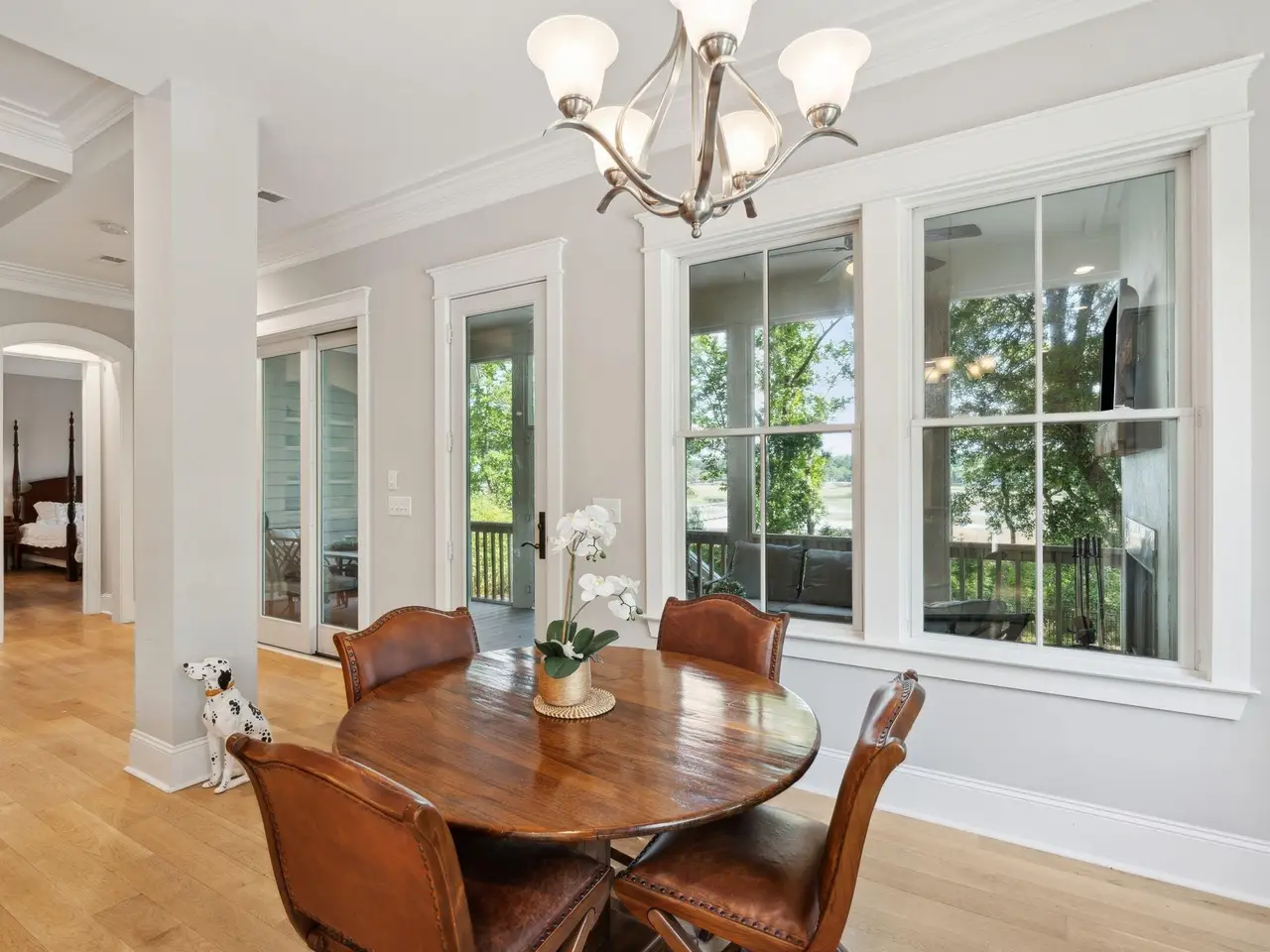 Breathtaking Marsh Views on the Wando River - Private 3-Acre Estate in Gated Pepper Plantation. Enjoy the ultimate Lowcountry lifestyle on 3 private acres overlooking the Wando River in the gated community of Pepper Plantation. Tucked at the end of a quiet cul-de-sac, this 5-bedroom, 5-bath custom-built home delivers elegance, privacy, and sweeping marsh-to-river views. The elevated, three-story home is designed for easy living and effortless entertaining. As you approach, a beautifully landscaped yard and wooded entry offer unmatched seclusion. The solid mahogany front door opens into a sun-drenched interior featuring white oak hardwood floors, high ceilings, and a seamless flow of space. A formal dining room and study flank the foyer, while the expansive great room and chef's kitchen span the rear of the home, capturing spectacular views. The kitchen is outfitted with top-tier appliances including a 48" Sub-Zero refrigerator, Wolf double ovens and gas cooktop, farmhouse sink, and granite countertops. A generous breakfast nook is wrapped in windows and overlooks the water, the perfect spot for family meals or morning coffee. The main-level primary suite is a private sanctuary with panoramic views of the Wando River, dual walk-in closets, and a spa-inspired bathroom with double vanities, walk-in shower with rain head, and soaking tub. An additional guest suite and full bath are also located on the ground floor. Upstairs are three additional bedrooms, one with an en suite bath, and two sharing a Jack & Jill, plus a large bonus room ideal for a media room, playroom, office or sixth bedroom. The ground level features a climate-controlled bonus space with a full bath, ideal for a home gym, artist's studio, or guest suite. The 3-car garage offers epoxy-coated floors, a workshop area, and ample storage. Step outside to your own private oasis. The screened-in porch with wood-burning fireplace opens to a spacious backyard with a travertine-surround saltwater pool, all framed by moss-draped oaks and uninterrupted marsh views. Enjoy outdoor dining, evening sunsets, or weekend gatherings in this truly exceptional setting. Additional features include: - 3-stop elevator - Whole-home generator - Standing seam metal roof - Impact-rated windows and doors - Fenced backyard with direct bathroom access from pool area Pepper Plantation is an exclusive enclave of custom homes offering privacy, natural beauty, and unique amenities. Residents enjoy an equestrian-style setting with a training track, riding trails, and a picturesque pavilion overlooking a freshwater lake, perfect for weddings, events, or community gatherings. Located just 12.5 miles from Isle of Palms beach and 15 miles from downtown Charleston, this community offers the perfect blend of quiet Lowcountry living with Charleston convenience.