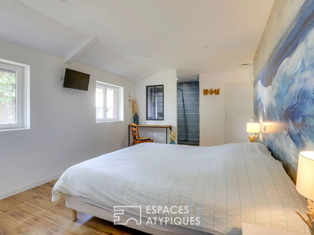 Less than ten minutes from the ocean beaches, this unique airial dating from 1850 displays all the charm of a carefully renovated character property. Set on a vast wooded plot of 6,778 m2, this estate consists of two independent single-story houses: a resolutely Landes-style main house with 169 m2 of living space and a renovated old barn of 91 m2, totaling eight bedrooms. A swimming pool, century-old oak trees and a petanque court complete this rare ensemble. Both homes offer generous volumes and a warm atmosphere, enhanced by a quality renovation combining authenticity and contemporary comfort. Exposed beams, brick walls, solid wood joinery, every detail tells the story of the place while ensuring functionality and aesthetics. The main house includes a bright and welcoming living space, four bedrooms, and elegantly appointed bathrooms. The fully independent cottage offers the same comforts, allowing for perfect flexibility depending on the project. The meticulously maintained landscaped grounds are a true haven of peace. The swimming pool, the heart of the property, offers a refreshing escape amidst the vegetation. The petanque court, nestled in the shade of the trees, extends the art of outdoor living. Located in the immediate vicinity of the village of Azur, the property is close to shops, schools and all amenities, in a privileged natural environment. With its unique character, its multiple possibilities of use and its remarkable energy performances (DPE A for the gite and DPE B for the main house), this Landes property seduces with its authenticity and its potential. REF. 12287EALDAdditional information* 14 rooms* 8 bedrooms* 1 bathroom* 3 shower rooms* Outdoor space : 6778 SQM* Property tax : 1 515 €Energy Performance Certificate Primary energy consumptionb : 67 kWh/m2.yearHigh performance housing*A*67kWh/m2.year2*kg CO2/m2.yearB*C*D*E*F*G Extremely poor housing performance* Of which greenhouse gas emissionsa : 2 kg CO2/m2.yearLow CO2 emissions*2kg CO2/m2.yearA*B*C*D*E*F*G Very high CO2 emissions Estimated average annual energy costs for standard use, indexed to specific years 2021, 2022, 2023 : between 880 € and 1270 € Subscription Included Agency fees The fees include VAT and are payable by the vendor Mediator Mediation Franchise-Consommateurswww.mediation-franchise.com29 Boulevard de Courcelles 75008 ParisInformation on the risks to which this property is exposed is available on the Geohazards website : www.georisques.gouv.fr
