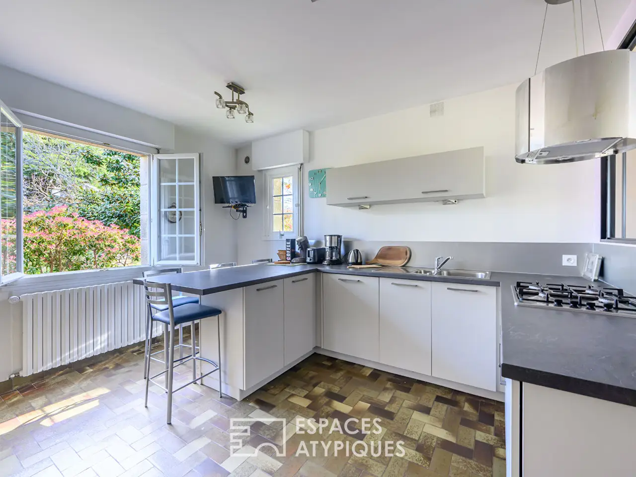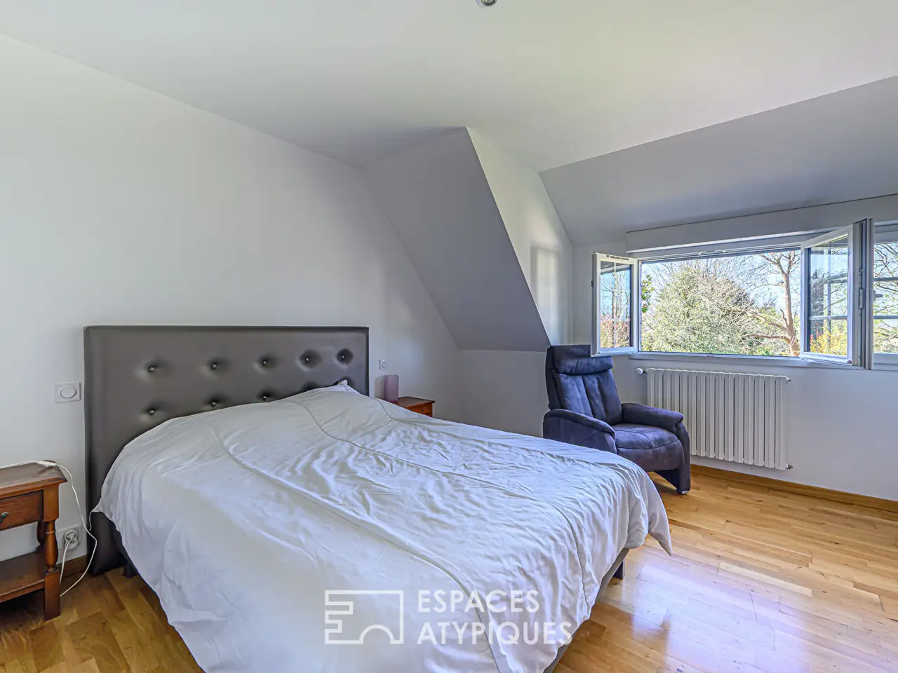 In the heart of Baden, in the immediate vicinity of the golf course and coastal paths, this neo-Breton house of 144 m2 is part of a privileged environment. Built on a vast wooded plot of 4500 m2, including a building plot of nearly 800 m2, it offers a harmonious living environment between nature and comfort. An outdoor swimming pool completes this set, inviting you to relax in complete privacy. The neo-Breton architecture gives this residence an authentic charm, sublimated by generous volumes and a functional distribution. The ground floor is built around a bright living room, with a fireplace, ideal for convivial moments. A fitted and equipped kitchen, with timeless lines, makes everyday life easier. This single-storey space also includes a bedroom and a bathroom, guaranteeing comfort and practicality. Upstairs, several spacious bedrooms benefit from a beautiful light and an optimized layout, perfect for welcoming family and guests. Outside, the vast landscaped garden unfolds a neat vegetation, between mature trees and flower beds, offering a peaceful and green setting. The swimming pool, ideally exposed, is a real asset to enjoy the beautiful sunny days. The 800 m2 building plot opens up multiple possibilities for development according to needs. The immediate environment, between preserved coastline and practical infrastructures, ensures a privileged living environment: shops, schools and services are accessible in a few minutes. This property is distinguished by its rare location, its potential and its preserved atmosphere, a stone's throw from the Gulf of Morbihan. A unique opportunity to acquire a property of character, combining character and a sought-after living environment. ENERGY CLASS: E / CLIMATE CLASS: E Estimated average amount of annual energy expenditure for standard use, based on average energy prices indexed to the years 2021, 2022 & 2023: between €3330 and €4560/year Information on the risks to which this property is exposed is available on the Georisques website: www.georisques.gouv.frAURÉLIE TATARD07 62 98 22 96RSAC VANNES 803 683 606REF. 454EAMAdditional information* 5 rooms* 4 bedrooms* 1 bathroom* 1 bathroom* Outdoor space : 4500 SQM* Parking : 2 parking spaces* Property tax : 1 545 € Energy Performance Certificate Primary energy consumptione : 171 kWh/m2.yearHigh performance housing*A*B*C*D*171kWh/m2.year53*kg CO2/m2.yearE*F*G Extremely poor housing performance* Of which greenhouse gas emissionse : 53 kg CO2/m2.yearLow CO2 emissions*A*B*C*D*53kg CO2/m2.yearE*F*GVery high CO2 emissionsEstimated average annual energy costs for standard use, indexed to specific years 2021, 2022, 2023 : between 3330 € and 4560 € Subscription IncludedAgency feesThe fees include VAT and are payable by the vendorMediatorMediation Franchise-Consommateurswww.mediation-franchise.com29 Boulevard de Courcelles 75008 ParisInformation on the risks to which this property is exposed is available on the Geohazards website : www.georisques.gouv.fr