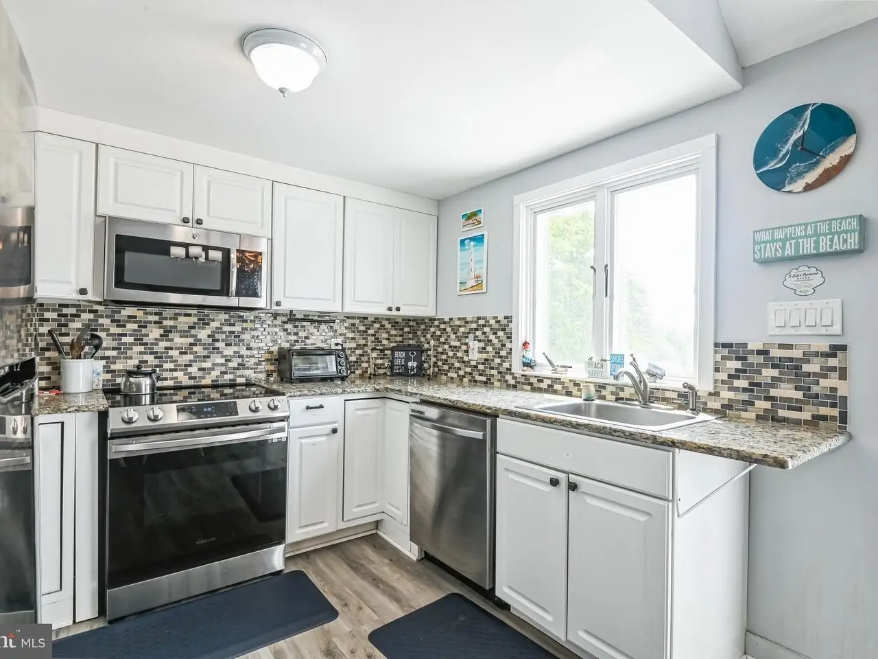 Absolutely beautiful five bedroom and two full bath home in the heart of Barnegat Light. This home has been meticulously maintained and shows at every turn. It has great rental history and is perfectly located with short walks to either the beach or the bay and a short bike ride to the Barnegat Lighthouse, Viking Village, and all that Barnegat Light has to offer. The interior of this home starts with a French door to the lower level and opens up to the large Family room, there is luxury vinyl plank flooring throughout the home, a large laundry/utility room, a nicely updated full bath on the lower level along with two large bedrooms. The second floor boasts an open floor plan with a large Living room with cathedral ceilings, a dining area with a sliding glass door to the front deck, an updated kitchen with white cabinets, stainless steel appliances, and a tile backsplash, there is also a large primary bedroom on this level and then upstairs there is the final 2 bedrooms. The exterior of the home offers maintenance free vinyl siding, a timberline shingle roof, a front deck for your morning coffee, a large deck off the back of the home that overlooks the backyard that has large fire pit area, a pergola for entertaining, a large shed, and all of this on a 50x125 lot. Don't miss your opportunity to see this wonderful home!
