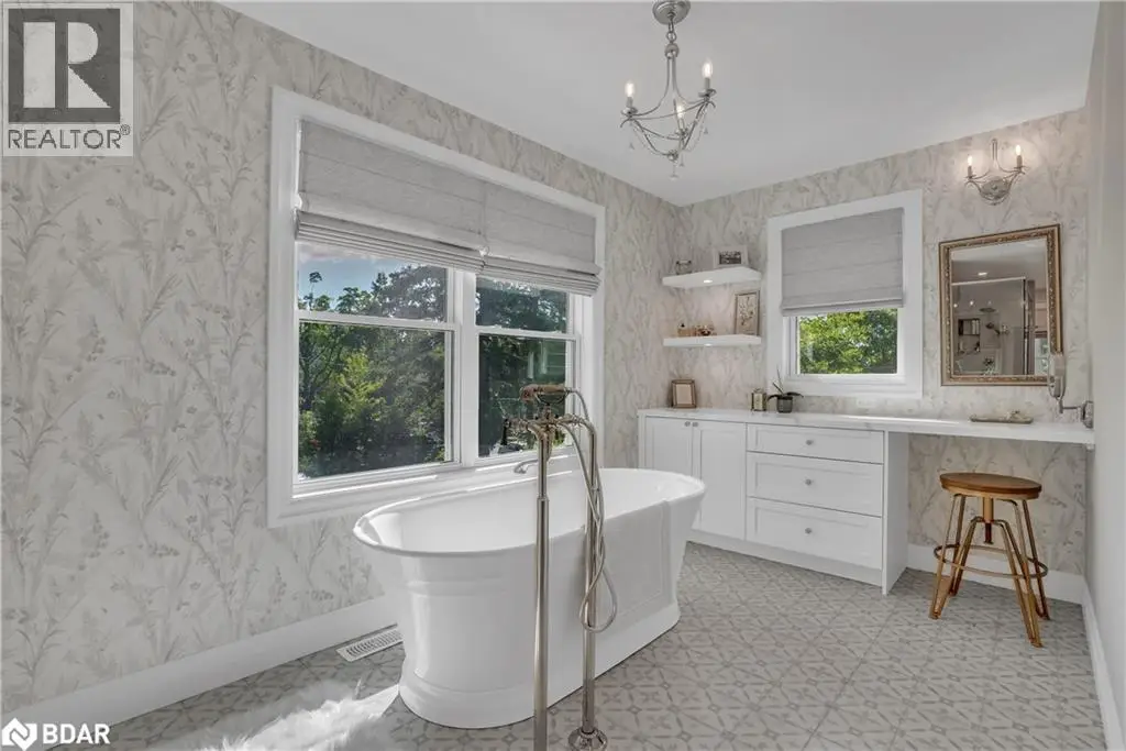 This rare, updated century home in the heart of Barrie offers the perfect blend of historic charm and modern luxury on a private 0.62-acre lot. Tucked away on a quiet, tree-lined street, the home is surrounded by mature trees, perennial gardens, and flagstone walkways, with outstanding curb appeal and a welcoming traditional front porch. Inside, the newly renovated kitchen features engineered laminate floors, a 9-foot island, farmhouse sink, built-in coffee station, and views of the backyard oasis. The main floor includes a family room, separate office, laundry area, and a screened three-season porch with an infrared heater—ideal for relaxing in any weather. The home has been freshly painted and fitted with custom California shutters and blinds throughout. Upstairs, there are three bedrooms, including a grand primary suite with walk-in closet and a spa-style ensuite offering an oversized glass shower, his-and-hers sinks, Roman tub, makeup vanity, and large windows for natural light. A total of 3.5 bathrooms ensures comfort and convenience for the entire household. The finished basement provides a second family room with gas fireplace, a full in-law kitchen, and a flex room perfect for guests or a gym. The backyard is a true retreat featuring a 60-foot inground pool with swim lane and waterfall, an 8-person hot tub, and a cedar-lined pool house with a changeroom and bathroom. Poured and stamped concrete surrounds the outdoor space, along with two custom wood sheds and vibrant perennial landscaping framed by armour stone. Additional highlights include a double car garage, Generac 20kW natural gas generator, and whole-home water filtration system. This is a rare chance to own a character-filled home that delivers on privacy, space, and lifestyle—right in the heart of Barrie. (id:7434)