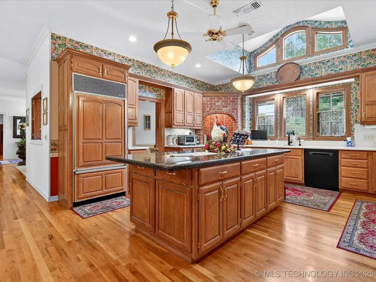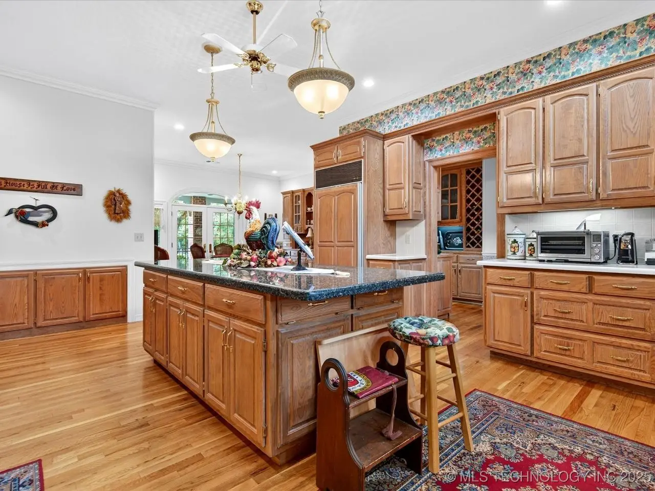 Timeless! One owner custom built by Terrell Taylor/ Designer Brent Gibson. Country living & close to town. Brick Entry with double electronic gate. Quality details throughout from top to bottom. All rooms are spacious in size including a fantastic butler Pantry between Formal dining and kitchen with bar, ice maker, sink, wine rack, cabinets with pull out drawers, countertop workspace, built in desk, leaded glass window. Living room with large fireplace/mantle. Dining room with chair railing, nook for sideboard. Dream kitchen with three roll out appliance garages. Storage below countertops are roll out. Corian sink/countertops. Double trash bins. Island is 3'8" x 8'11" granite with drawers and pull out storage. Jen Air cooktop sits in arched brick nook. Microwave, sub Zero refrigerator/freezer. Instant hot water. Thermador warming drawer. Under cabinet lighting throughout kitchen. Large walk in pantry. Dinette area with chair rail/built in hutch, double doors/side lights look out onto deck and scenic pond. Extensive family room with fireplace, master bedroom with pan ceiling, built in tv cabinet & storage. Master bath with separate extra large shower, step in tub, double sinks and makeup vanity. Large walk in closet, his/her side with built in center shelving/bench seat. First bedroom is a full pullman bath. Second bedroom with window seat, walk in closet/shoe rack. Third bedroom with walk in closet/shoe rack. Walk in cedar closet. Fourth bedroom or study has private bath, walk in closet. Super size utility room with large closet, sink, counter space with cabinets above and below, built in sewing center with work space, ironing board. Plantation shutters. Covered patio. Garage is fully insulated with cedar siding walls and stainless steel sink. Third garage/shop with heat/air, lots of built ins & wired for power tools. Security system, sprinkler system. Steel frame 30X40 shop with concrete floor & skylights. Whole house generator.