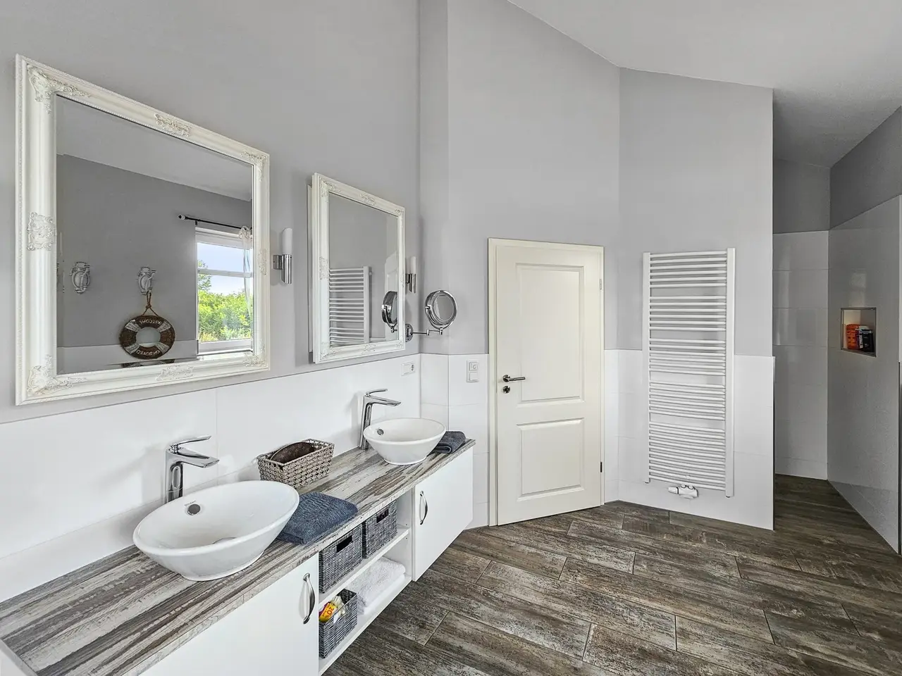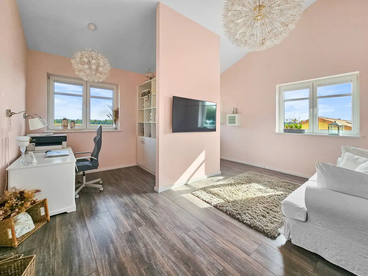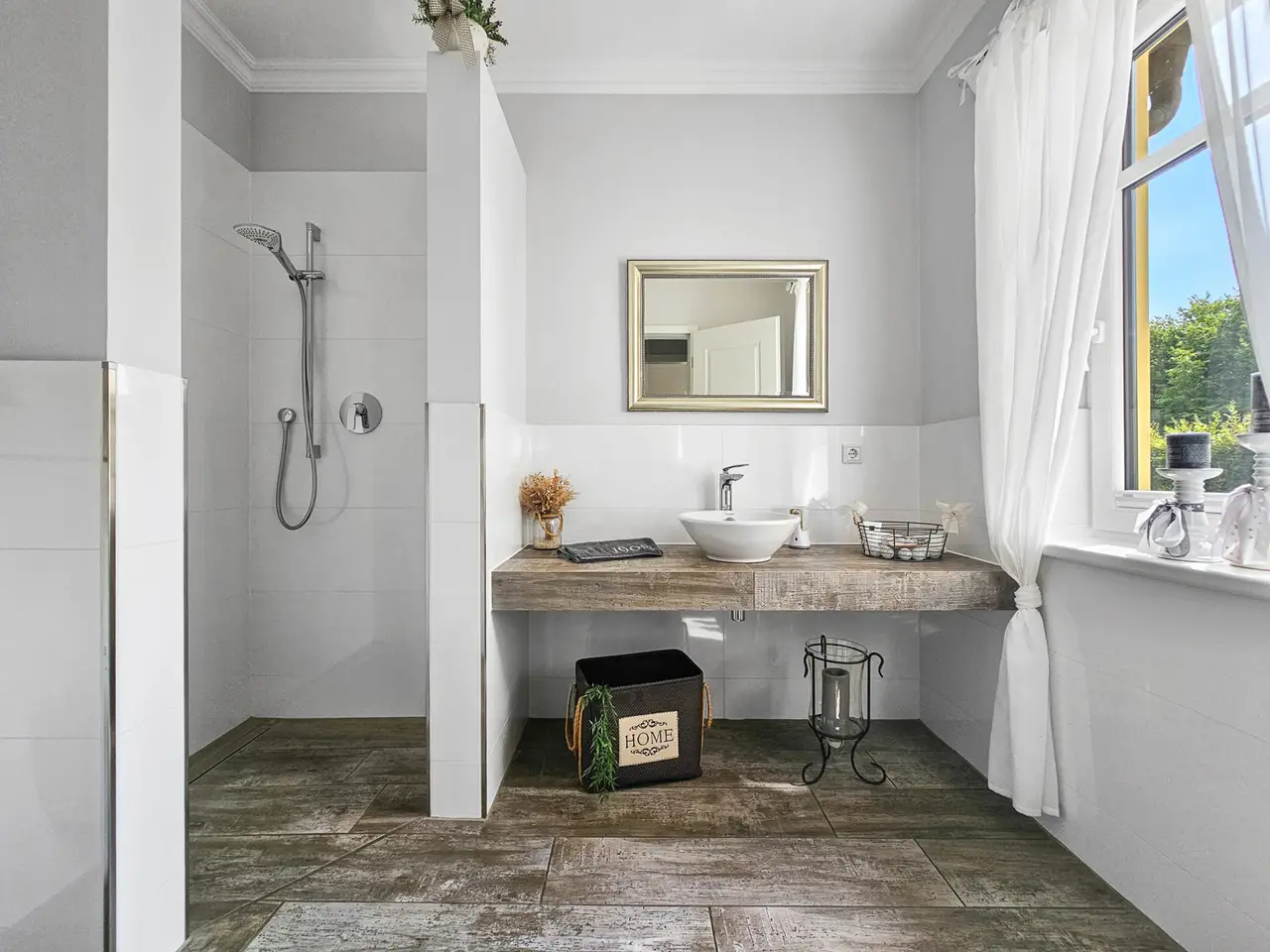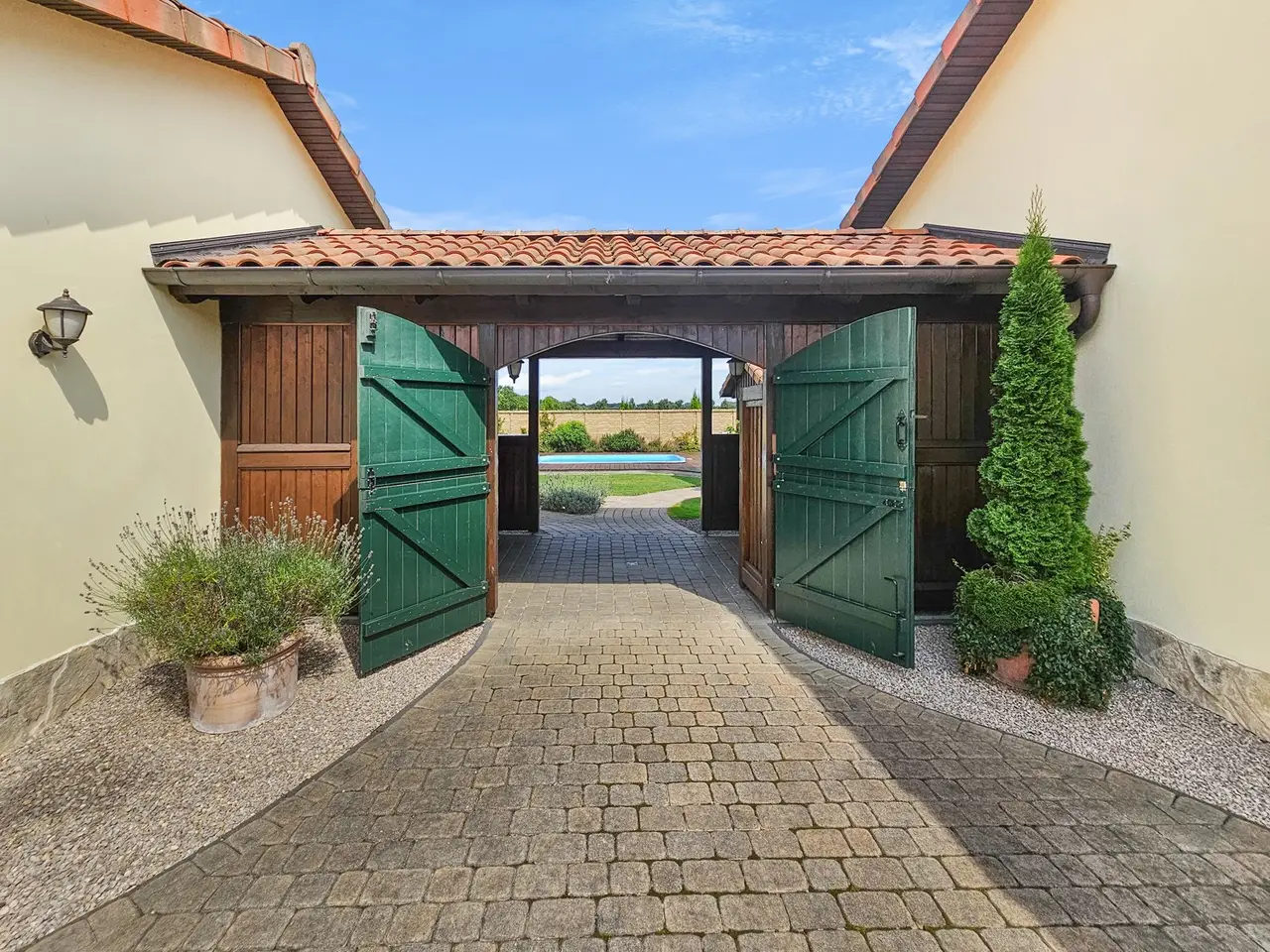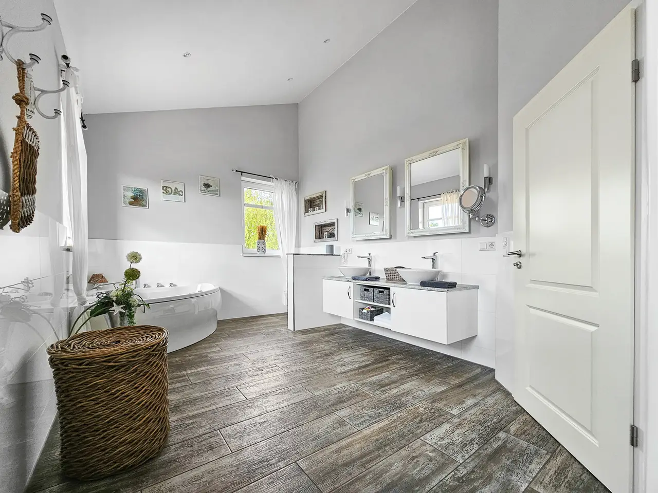 Horse lovers in particular will find their dream home on the approximately 4,711 m² property. In addition to the house newly built in 2015 (approx. 222 m² living space), the completely restored outbuilding (approx. 272 ​​m² usable space) offers plenty of space for hobbies and leisure. A beautiful intermediate building connects the two buildings and elegantly separates the courtyard area from the garden area and the paddock. In addition to three garages and a horse stable, there is also a workshop and a shed. Plans are already in place to convert the outbuilding into residential or commercial space, so that several generations could also live together. The entire property is stylish and built with great attention to detail and blends wonderfully into the surroundings. High hedges and two forged electric gates ensure pleasant privacy. High-quality furnishings, modern bathrooms, high ceilings and a bright, friendly living atmosphere ensure comprehensive living comfort in your own four walls. While the open-plan living and dining area invites you to spend cozy hours by the luxurious fireplace, especially in the winter months, the outdoor area, lovingly designed by the landscape architect, invites friends and family to spend magical evenings outdoors. The southwest-facing covered terrace, the secluded pool deck (consisting of a heated pool and whirlpool), the pond and the grill house are worth highlighting. The latter, with its integrated kitchenette and clay wood oven, will make the hearts of cooking enthusiasts beat faster. The approximately 1,750 m² paddock is enclosed with a weatherproof plastic fence and has access from the street and the yard. In combination with the stable and a separate sand paddock, horse lovers will get their money's worth here. Car lovers will not be left out either. The 3-car garage is high-quality tiled and heated. In addition, a screen and a projector are installed here, so that this room can also be used easily and conveniently for an evening with friends. The last room of the high-quality outbuilding is equipped with a large sectional door and is currently used as a workshop. Alternatively, a boat or a carriage can be stored here in a dry and safe place. The roof of the outbuilding is equipped with a 7.6 kWp PV system, so that a later conversion of the heating technology to a heat pump or hybrid heating is easily feasible and prepared. The house itself has five rooms, three bathrooms and a high-quality country kitchen with a cooking island. The current layout is ideal for a family of three to four. In addition to the living and dining area and the two bedrooms in the attic, there is another room on each living level. These two rooms can be used as children's rooms, work rooms, guest rooms or dressing rooms, depending on your needs and living situation. As mentioned at the beginning, parts of the outbuilding could be extended in coordination with the authorities and converted into another residential unit. Detailed features and technical data can be found in the separate equipment description. The property is located in the Lower Saxony town of Bassum (Hollwedel district) in the Diepholz district. Doctors, educational institutions and shops are easily accessible by car. The private school "LUKAS School" is less than 10 minutes away by car. The seminar and conference center "Die Freudenburg" is well-known and popular throughout the region. Located a little off the beaten track, it allows for relaxed working in a special atmosphere. Bassum offers a wide range of sports and leisure activities for young and old. In addition to a wide range of sports at TSV Bassum, depending on the season, you can visit the indoor or outdoor swimming pool, the "Petermoor" zoo, the Utkiek or the local go-kart track. There is also a tennis and riding club, a shooting range and several fitness studios. The town of Bassum (approx. 16,000 inhabitants) is part of the "Wildeshauser Geest" nature park and is located about 25 km south of Bremen. Due to its good infrastructure, Bassum is an ideal place to live for commuters. From the local train station, Bremen city center can be reached in less than 30 minutes. Located at the junction of federal highways 51 and 61 as well as various country roads (with a connection to the A1), there are also very good transport connections by car towards Bremen, Osnabrück and Hanover.