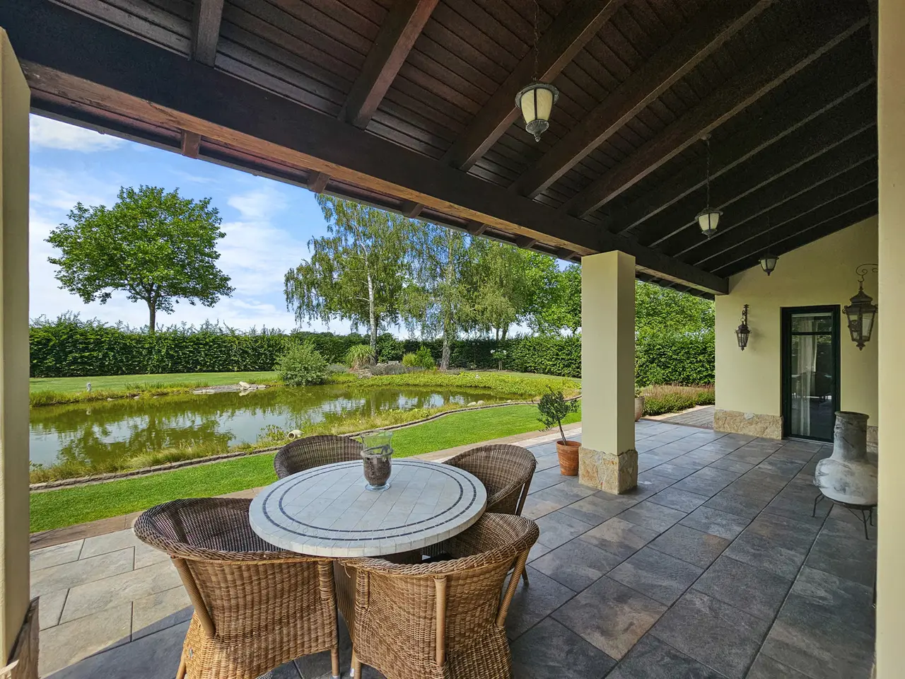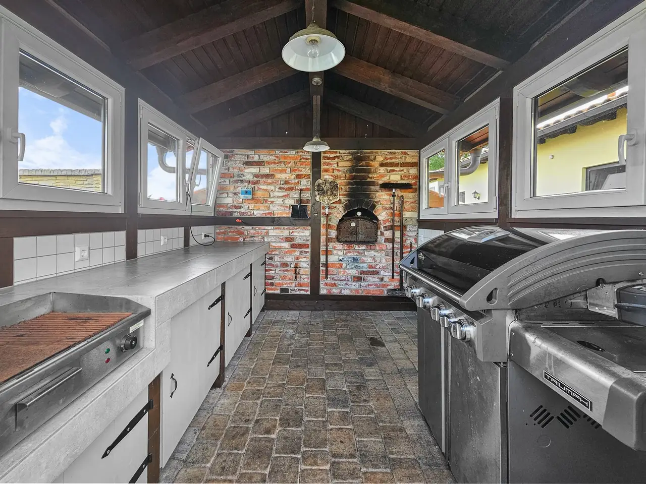 • Pond and grill house with integrated kitchenette