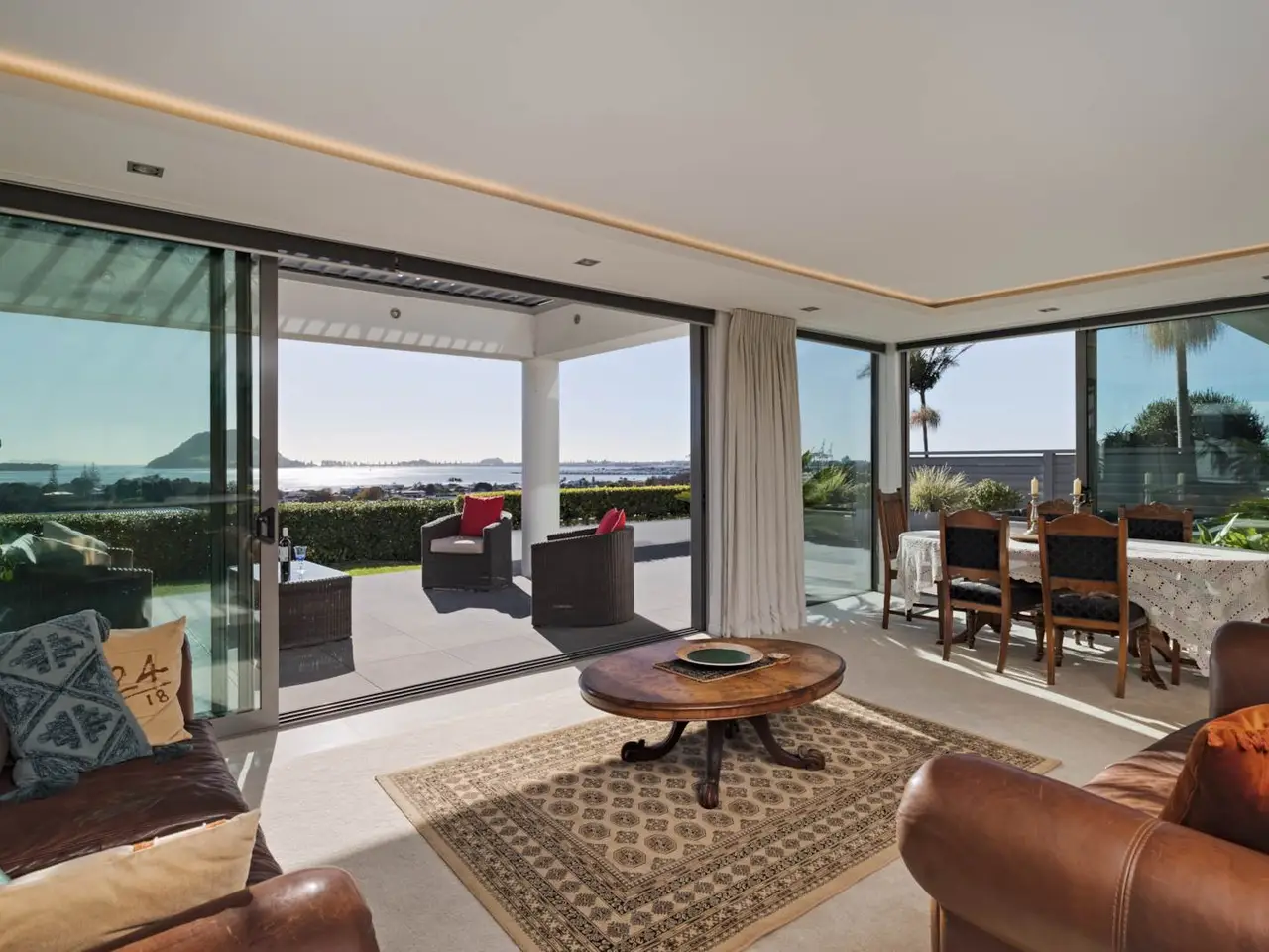 Superior apartment with 180 degree views of Mount Maunganui and the harbour entrance. Set in one of the Bay of Plenty’s most desirable coastal locations, this generously proportioned apartment offers an exceptional blend of space, comfort, privacy and natural beauty. With uninterrupted views of Mount Maunganui and Matakana Island from both the light-filled living area and the master suite, every day begins and ends with a truly spectacular outlook. The open-plan kitchen, dining, and living spaces are designed for effortless entertaining and relaxed living, flowing seamlessly through large doors to an expansive, newly paved outdoor area. Perfectly positioned for alfresco dining, soaking up the sun, or evening gatherings, this private outdoor space enhances the apartment’s connection to its stunning surroundings. A box office view during the cruise ship season. The master bedroom is a luxurious retreat, complete with breathtaking views, a walk-in wardrobe that doubles as a dressing room, and a modern ensuite. Two additional large bedrooms with dressing rooms provide ample space for guests or family, while a dedicated office offers the ideal work from home setup. A second full bathroom, plus powder room and generous storage complete the practical layout. Adding to the home’s comfort and appeal is a geothermal hot water bore, which supplies energy efficient heating throughout the property and fills the private soak pool, offering a spa-like experience right at home. With quality finishes, exceptional flow from indoor to outdoor living and onward to the private lawn, a location that’s second to none, this is a rare opportunity to secure a spacious, low maintenance home in one of the region’s most scenic and sought after settings. If this sounds like something you have been looking for, get in touch with us and book in your own private viewing.