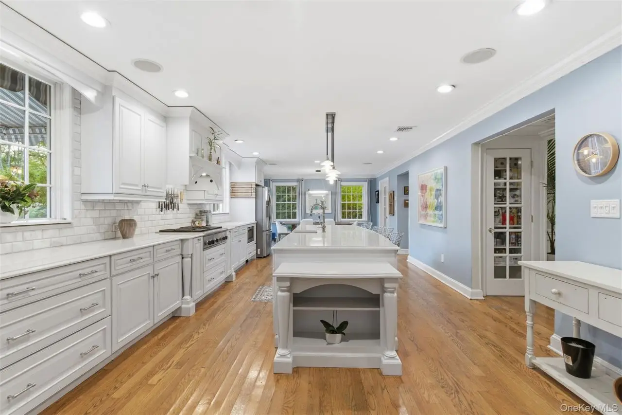 Rare opportunity to own a luxury home with resort-style living in Oconee Estates. This 5-bedroom, 3.5-bath center hall colonial is located on a storybook tree-lined street.Inside, discover a formal living room with a cozy wood fireplace and a gracious formal dining room. The expansive den features a gas fireplace and beautiful built-ins. A full sized office with closet and window. The light-filled chef's kitchen is a dream, boasting a huge center island, Thermador cooktop, double ovens, two dishwashers, wine room, radiant heat and bar area-plus a mudroom and laundry room for ultimate convenience.Upstairs offers a luxurious primary ensuite with a walk-in closet as well as his and hers closets and radiant-heated marble bath, additional ensuite with full bath, plus three more bedrooms and a full bath. Utilities include CAC, central vac, 8-zone gas heat, 300-amp electric, and a 2-car garage, this home has it all.Outside, enjoy a private oasis with a heated saltwater pool, hot tub, patio, outdoor shower and sports court-ideal for luxurious living and entertaining. Association provides access to private beach and marina with boat slip for full access to the Great South Bay! This is not just a home; it's a lifestyle waiting to be yours.