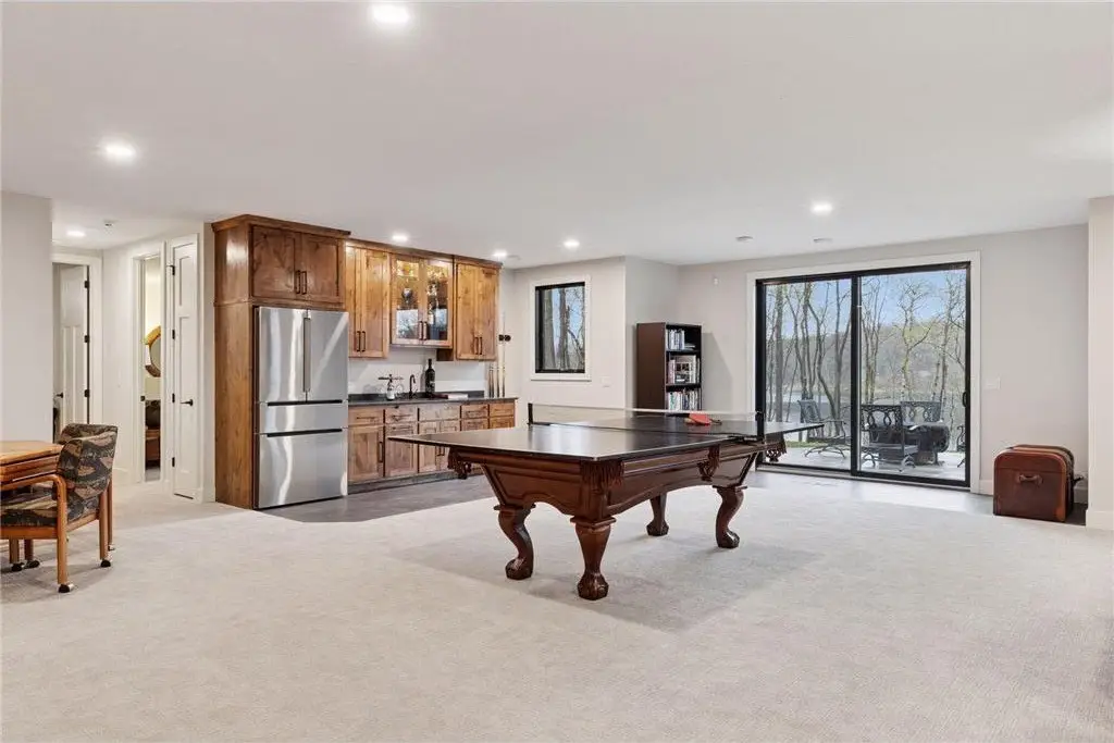 Discover refined elegance and effortless lakeside living in this stunning walkout rambler, custom-built by the renowned TJB Homes. Nestled on the serene shores of Lake McDonald, this home blends timeless craftsmanship with modern comfort—offering a rare opportunity to own a nearly new lakefront retreat in Cloverdale Farm. Soaring ceilings, expansive black Andersen windows frame breathtaking water views, and a seamless open-concept layout designed for both entertaining and everyday living. Main level living, Wirsbo In floor heat, Custom remote control window treatments, Sonos surround sound, and room to add a dock on the lake.