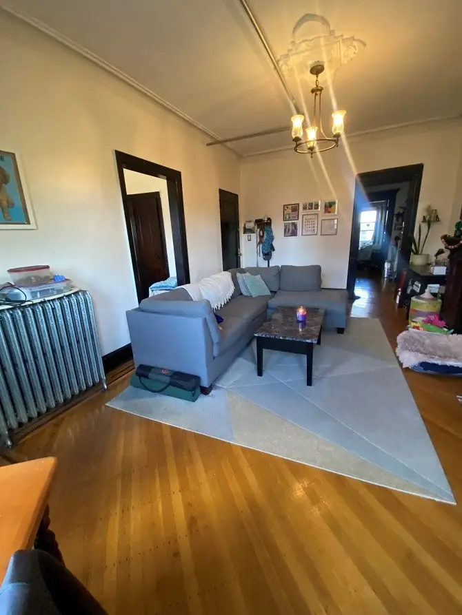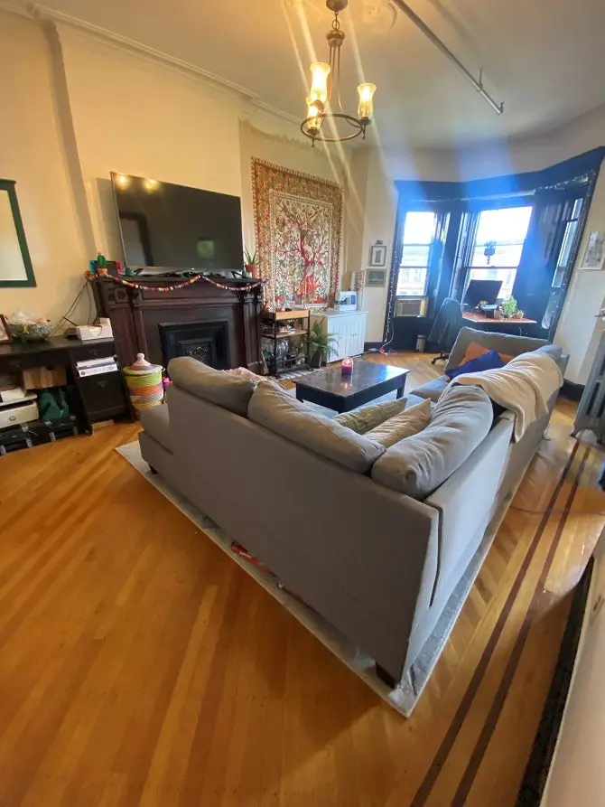 Classic Brownstone, top floor one bedroom, one bath floor thru. Chef's kitchen with dishwasher. As you enter the top floor, you are greeted by a generous living room and home office that has been used as a dining room, office or extra storage. The chef's kitchen is to spacious and is perfect for gathering and all your culinary desires. The living/dining room has a north facing window that shines bright. The bedroom has a southern exposure, and is large enough for a king size bed, plus desk, and storage furniture. Lastly, the art deco spa bathroom has a window and a deep soaking tub to enjoy. Move in November 15th flex Dec 1. Pets on approval. Laundry, A/C line and lots of shopping within blocks.