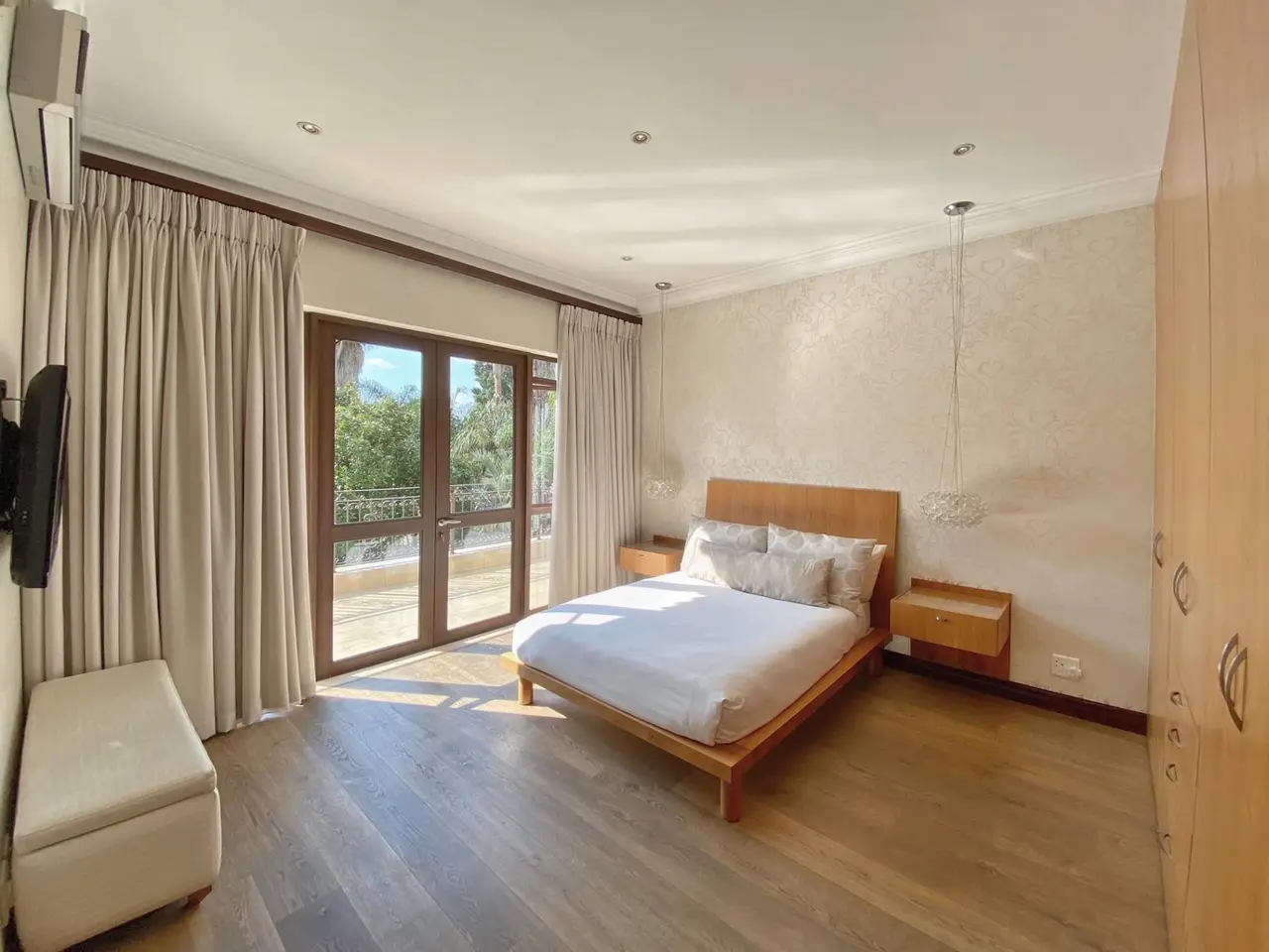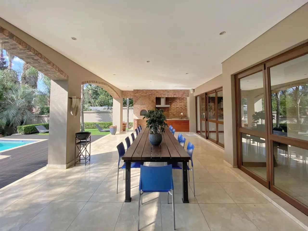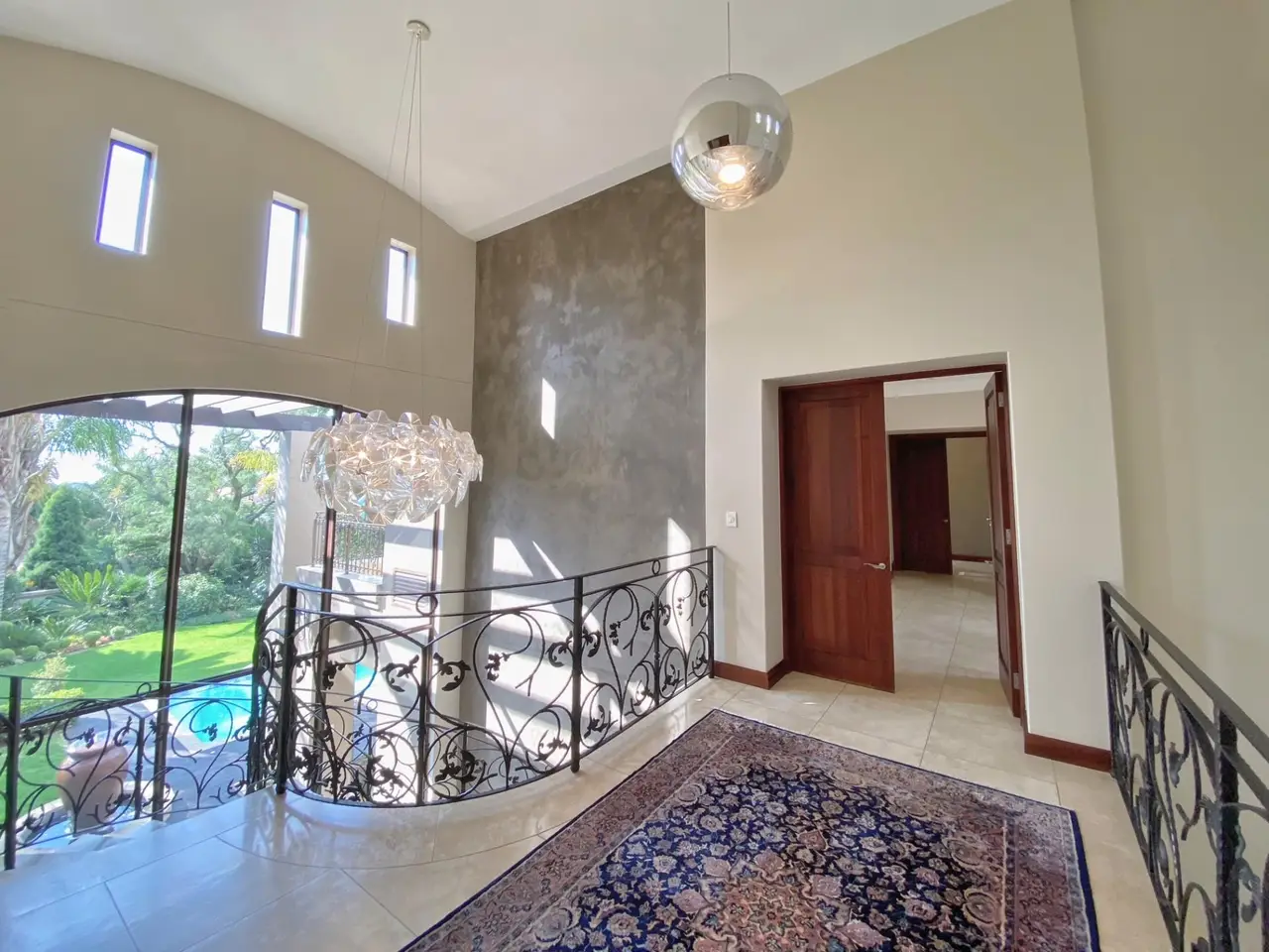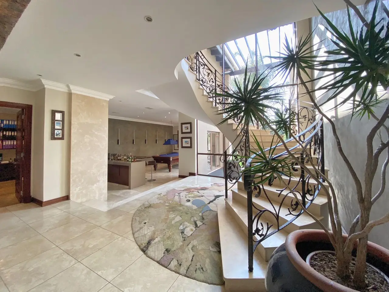 Ardently designed for the luminous flow of light and space reflecting expertise in every room with the finest of finishes throughout, this palatial residence boasts top security in Bedfordview's finest position. Featuring generous proportions, abundant natural light, landscaped surrounds and excellent security, this is one to truly call "home". One is welcomed by open plan entrance hall featuring a spiral staircase, open plan entertainment lounge with modern fitted bar and private fitted study. The family room leads off from the entrance hall and offers a gas fireplace with the dining room adjacent to the lounge. The dining room also features a built-in wine area with serving station to wine and dine family and friends from. The large covered patio with built-in braai further enhances the entertainment features of this home. The modern kitchen presents warm wood finishes, gas stove, tea & coffee station which can be closed off and a separate scullery with space for appliances. The landscaped surrounds with sparking pool and wooden deck further complete this home. With automated garaging for 4 cars, excellent security, inverter system to help make this load-shedding days easier and a pristine interior this exclusive residence is for the sophisticated eye!