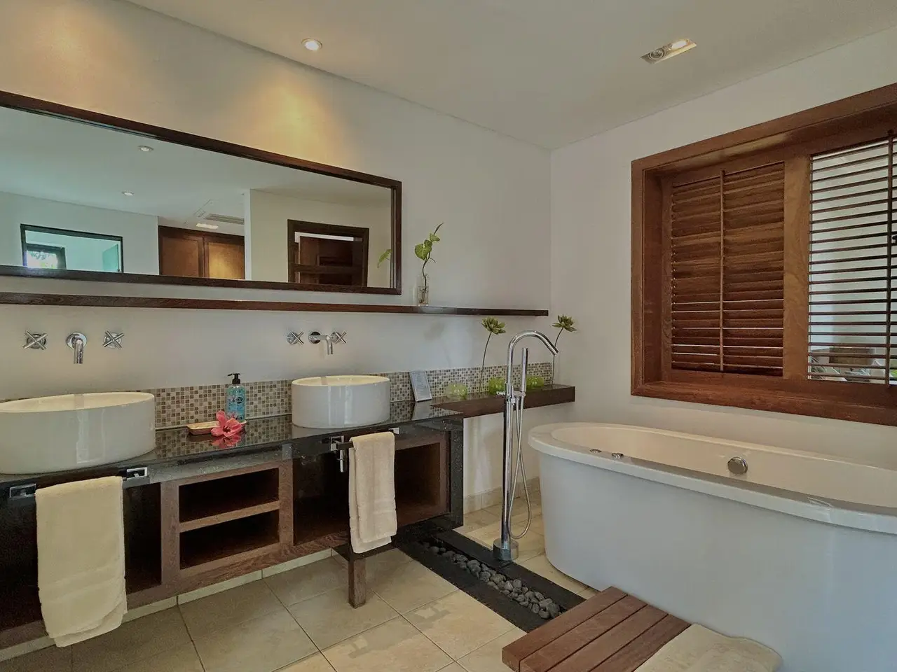 Experience island luxury in this stunning 4-bedroom villa, designed in a charming island style. This exquisite property features a long overflowing pool and a sprawling garden, perfect for relaxation and outdoor activities. The bright and spacious interiors seamlessly blend with the lush outdoor scenery, creating a tranquil retreat. Enjoy direct access to a pristine beach and exclusive hotel facilities, including restaurants, spas, and fitness centers. This villa offers the perfect blend of privacy, luxury, and convenience, making it an ideal tropical paradise for families and guests.