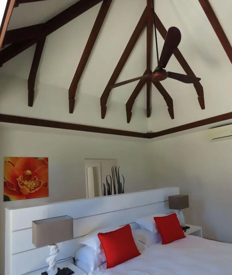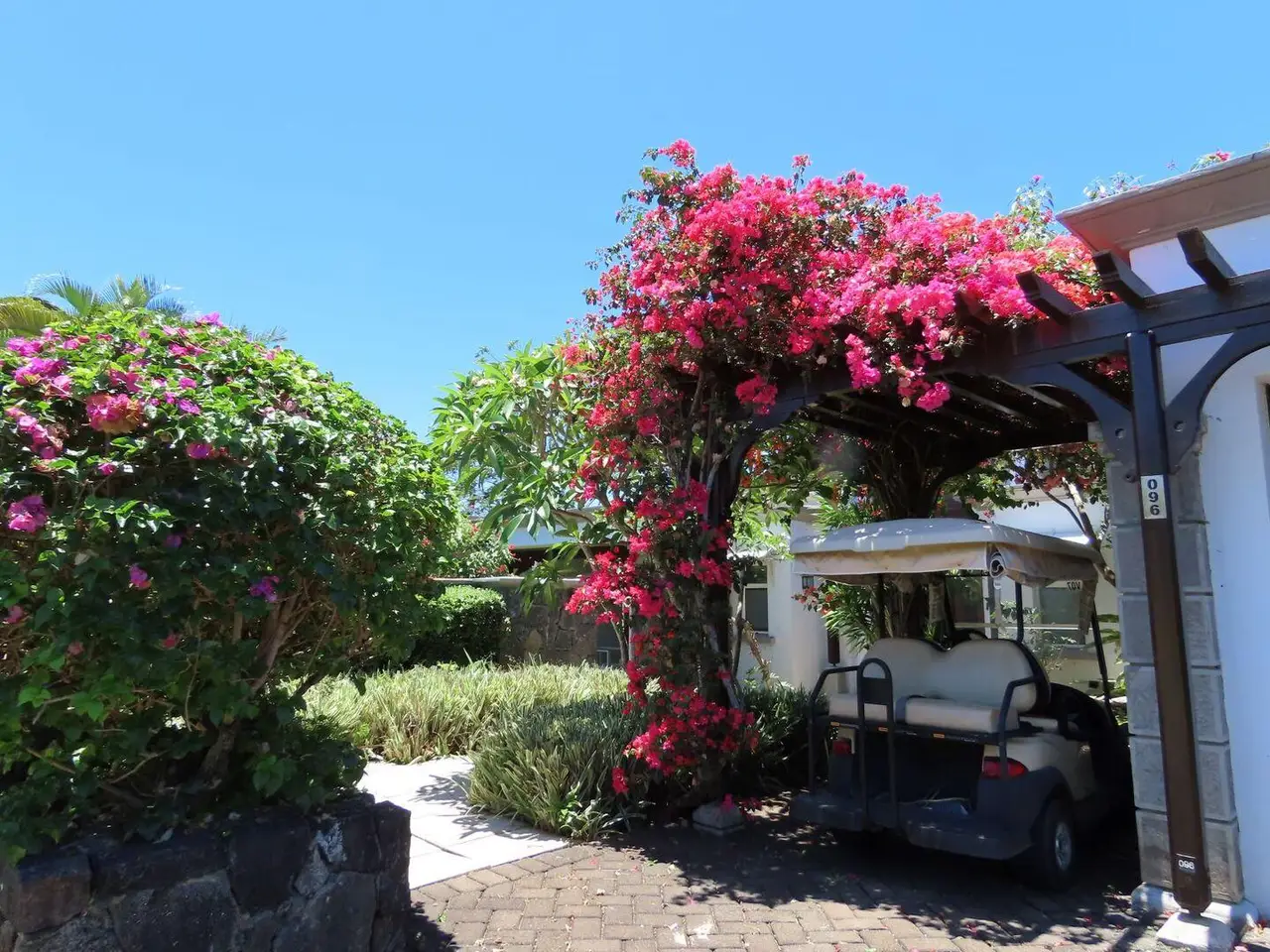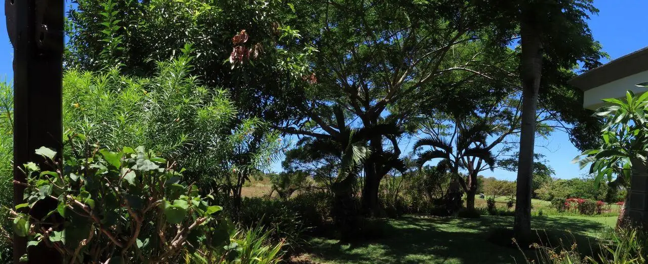 Outside, this single storey family home rises above the private 18 holes golf course, part of the Villas Valriche IRS Golf and Lifestyle Estate. It bears open views across a mature tropical garden of 660 m2, plus open land, then the golf course and finally distant sea views. With no close neighbours, this extremely private dwelling of 250 m2 is well-spaced from other villas. It also features a double car garage, plus a golf cart port, The U shape of this house surrounds a 40m2 rim flow concrete swimming pool with slate tile finish and two external showers, completed by a fully built gazebo kiosk, covered terraces, pool deck, bar and solid state barbecue for a total covered area of some 415 m2 and enclosed of 685 m2. Inside, a large gourmet kitchen, fully equipped with island, scullery, laundry room, direct outside and garage accesses, opens onto the 20 m2 dining room. It links to a 35 m2 living area and 25 m2 TV lounge. Both these spaces are separated by plantation shutters. Once opened to create a larger indoor entertainment space, it can also incorporate the bedrooms lobby of 13 m2, featuring a large dome light. The TV lounge has a separate covered terrace and leads to a secluded back garden which also opens up to one bedroom. High ceilings with timber frame and open fire chimney give character to the living room which is under pitched roof. All 4 bedrooms benefit from their private bathrooms. One provides a tub useful for youngsters. The master bedroom adds an en-suite separate dressing. The entrance hall caters for a guest toilet and a separate washbasin.