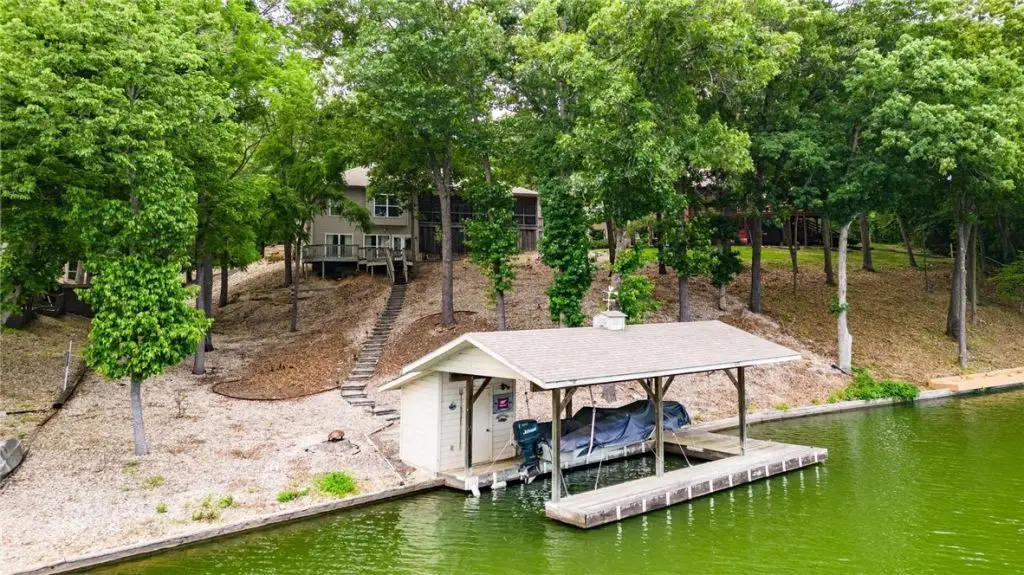 Lakefront living at its finest! This 4 bedroom, 3 bath home on beautiful Loch Lomond offers the perfect blend of luxury and convenience. Custom cabinetry runs throughout the home, complemented by rich hardwood flooring and thoughtfully designed living spaces. Enjoy serene lake views from the screened porch, or follow the gentle slope down to your private, covered boat dock with boat lift - perfect for days on the water. An oversized 3-car garage provides ample storage for vehicles, lake gear, or hobbies. Ideally located with easy access to all that Bella Vista has to offer, this is the lake retreat you've been waiting for!