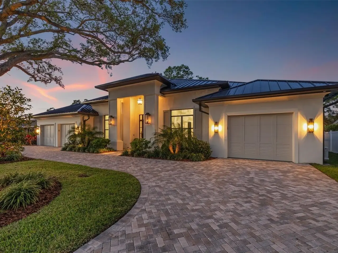 Move straight into an untouched masterpiece overlooking the 5th fairway of the prestigious Pelican Golf Club, widely regarded as Pinellas County’s finest private course. Completed in 2025 and never occupied, this executive residence pairs crisp modern architecture with warm, livable spaces, creating an ideal setting for everyday comfort, grand entertaining, and multigenerational living. A dramatic great room welcomes you with oak floors, 14-foot coffered ceilings, and an entire wall of glass that frames manicured fairways and bathes the interior in natural light. The adjacent chef’s kitchen is a true showpiece, anchored by dual center islands, bespoke cabinetry, dramatic marble countertops, Kraus workstation sinks, Waterworks fixtures, and professional-grade appliances that are equally suited to casual breakfasts or catered soirées, while the open dining and living areas flow seamlessly to the outdoors through hurricane-rated sliders. The primary suite is a private sanctuary with two generous walk-in closets and a spa-inspired bath featuring dual oversized rain shower heads, a deep soaking tub, and dual vanities with a dedicated cosmetics station. A split-bedroom layout ensures privacy for family and guests, and a versatile bonus room can serve as an executive study, formal dining room, or fifth bedroom. Everyday convenience is elevated by two full sets of washers and dryers in the interior laundry room, and climate-controlled storage in the oversized two-car garage; a separate air-conditioned single garage, about 375 square feet, that can easily accommodate a third vehicle or golf cart. Outback, resort living awaits: a salt-water pool and spa, motorized retractable screens, and a gas fireplace create an effortless venue for sunset cocktails beside the fairway. A 26kW whole-house generator, concrete-block construction, impact glass, and high-efficiency HVAC deliver peace of mind and low operating costs. Minutes from Clearwater’s beaches, marinas, and dining—yet worlds away in privacy and prestige, this brand-new residence offers flawless finishes, cutting-edge systems, and an unrivaled golf-course backdrop. Virtual tour and floor plans are available upon request.
