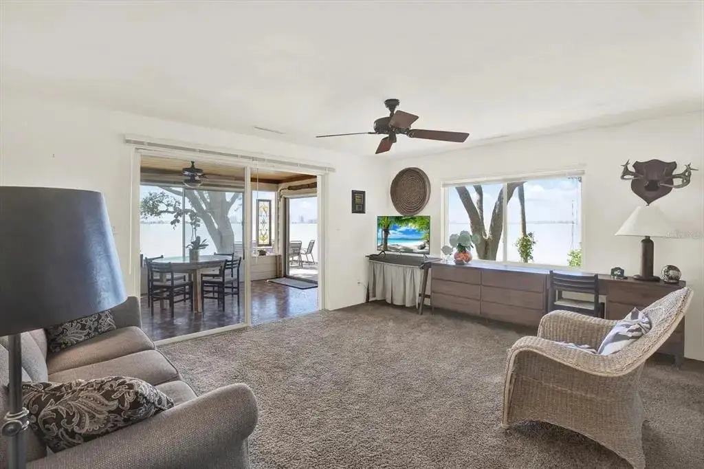 Bay-Front Home in Belleair on Rare Coastal Bluff – Waterfront views extending to Florida’s Gulf Coast! One of a handful of homes nestled on a private gate-able drive offering extraordinary privacy, this classic one-story waterfront beauty sits 14 feet atop a natural bluff overlooking Clearwater Bay. Waterfront - no flooding in 40-years ownership! Abundant windows frame mature trees and fill the home with natural light. Breath-taking views bring outdoors in, a seamless connection to surrounding natural beauty. Nearly 3000 SF, concrete construction, three bedrooms, three full and one half-bath, storage galore, living room with beautiful natural fireplace, huge dining room. Bright and spacious open-concept home perfect for entertaining. Air-conditioned terrazzo sunroom opens to patio deck with unique water views you must see to believe. Perfect for relaxing or entertaining, cooled by bay breezes, enjoying panoramic water views, stunning sunsets and entertaining wildlife...dolphins, otters, eagles and more. 720 SF basement(so rare in Florida!) with endless possibilities; playroom, gym, storage, man cave, etc. Riparian rights ensure continued enjoyment of a myriad of water activities from your own backyard including kayaking, fishing, paddleboarding and more, perhaps your own dock! Bordered to the south by green space and to the north by more than five acres of water-front park land, this property provides a rare level of privacy and seclusion. Enjoy peaceful walks along the water, surrounded by a symphony of bird songs beneath a canopy of majestic oaks. Belleair offers a small-town atmosphere with sophisticated conveniences … quality restaurants and shopping, town recreation center and prestigious Pelican and Belleair Country Club are within two miles, and Florida’s stunning Gulf Coast beaches are just minutes away. Belleair’s long history, civic pride and year-round community events make it one of Tampa Bays most sought-after neighborhoods. All this and just thirty minutes from TPA. Don’t miss this opportunity to own an incredibly unique piece of paradise.
