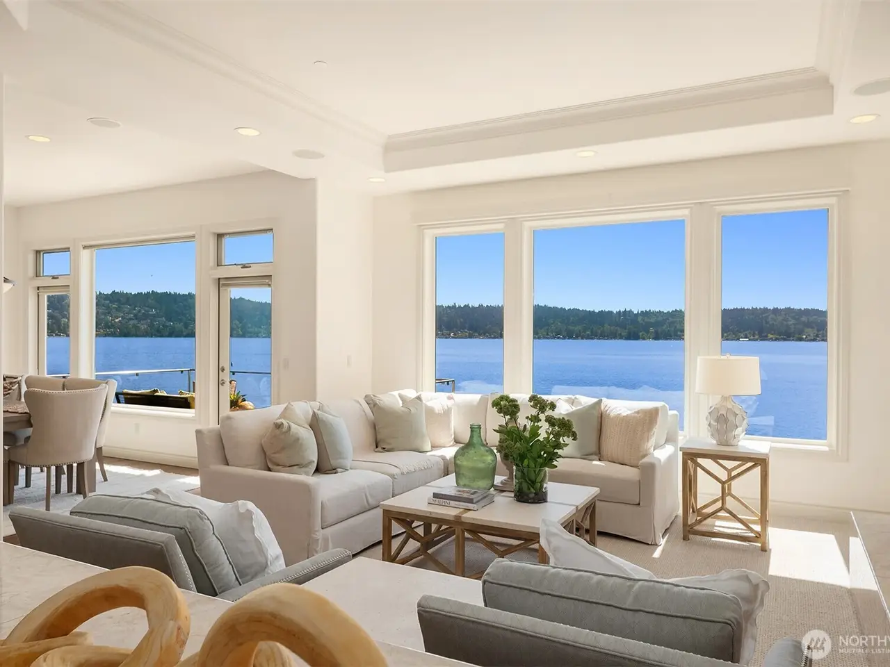 Stunning Lake Sammamish home with 180 degree views and a beautiful beach and dock. This Multi-Generational home is exquisite. Perfect home to enjoy year round and make lifelong memories. The great room is open with high ceilings and natural light.Ideal for entertaining. The chef's kitchen has everything you can imagine. The floor plan is extraordinary. Luxe primary with fireplace.Large office and spacious bedrooms.Multi-generational/guest quarters feature great room, fireplace, full kitchen, bedrooms, laundry, beach bath, separate entrance. Five car garage, elevator, great dock, newer furnaces/AC, 7500 lb Basta boat lift, Jet ski lift, guest parking. Beautiful neighborhood.Spotless one owner home built by MacPherson. Minutes to downtown Bellevue