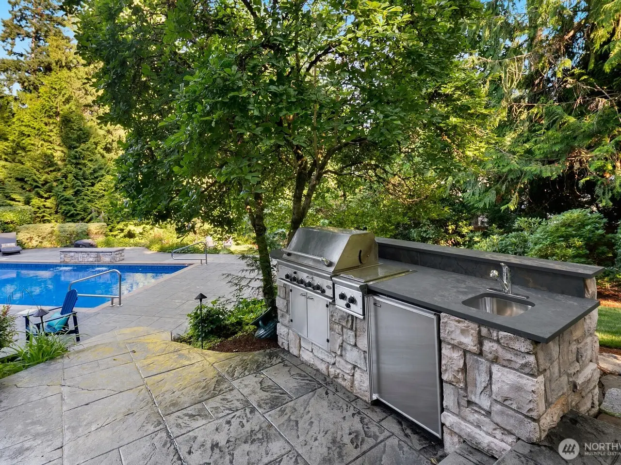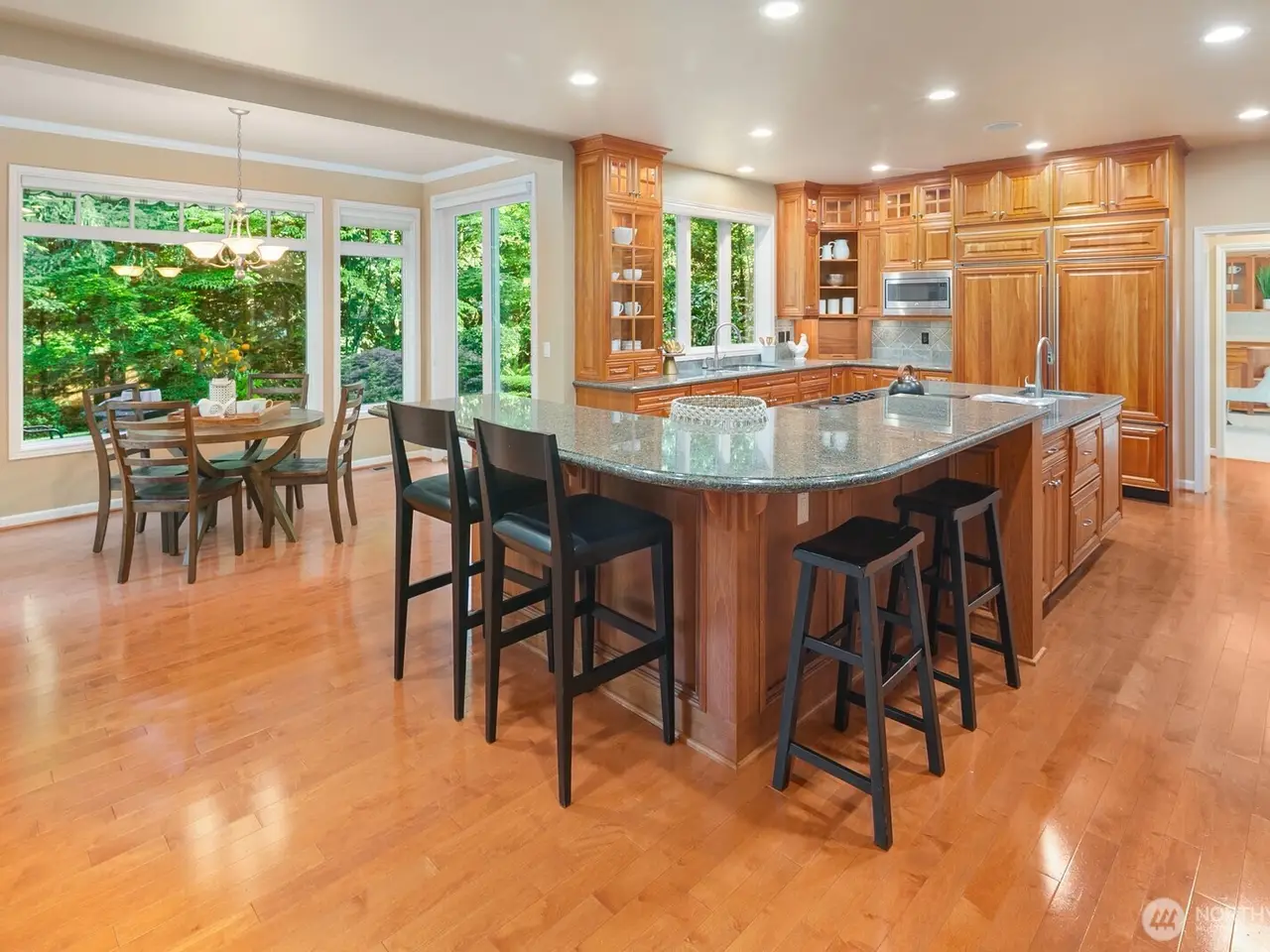 Experience refined living at its best with this impeccably maintained & thoughtfully designed 5700+ sq. ft home that expresses Luxury, Sophistication & Warmth. Situated nicely on a serene shy acre setting in one of Bridle Trails most sought-after neighborhoods. Impressive Chef's Kitchen with massive island, gorgeous counters & Premium appliances. Sun drenched living spaces with expansive windows will put a smile on your face. Space for everyone. Impressive main floor den, Dual bonus rooms, main level bedroom with nearby 3/4 bath. Primary Suite w/gas FP & sitting area, expansive patio-with built-in BBQ, gas fireplace and inground Pool! Oversized 3 car garage. Your own private oasis just mins from everything. Experience in person...Welcome home!
