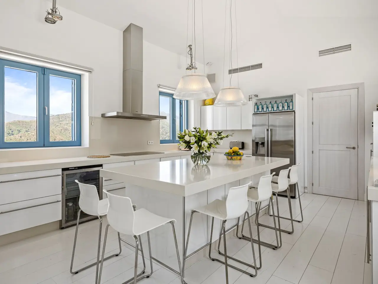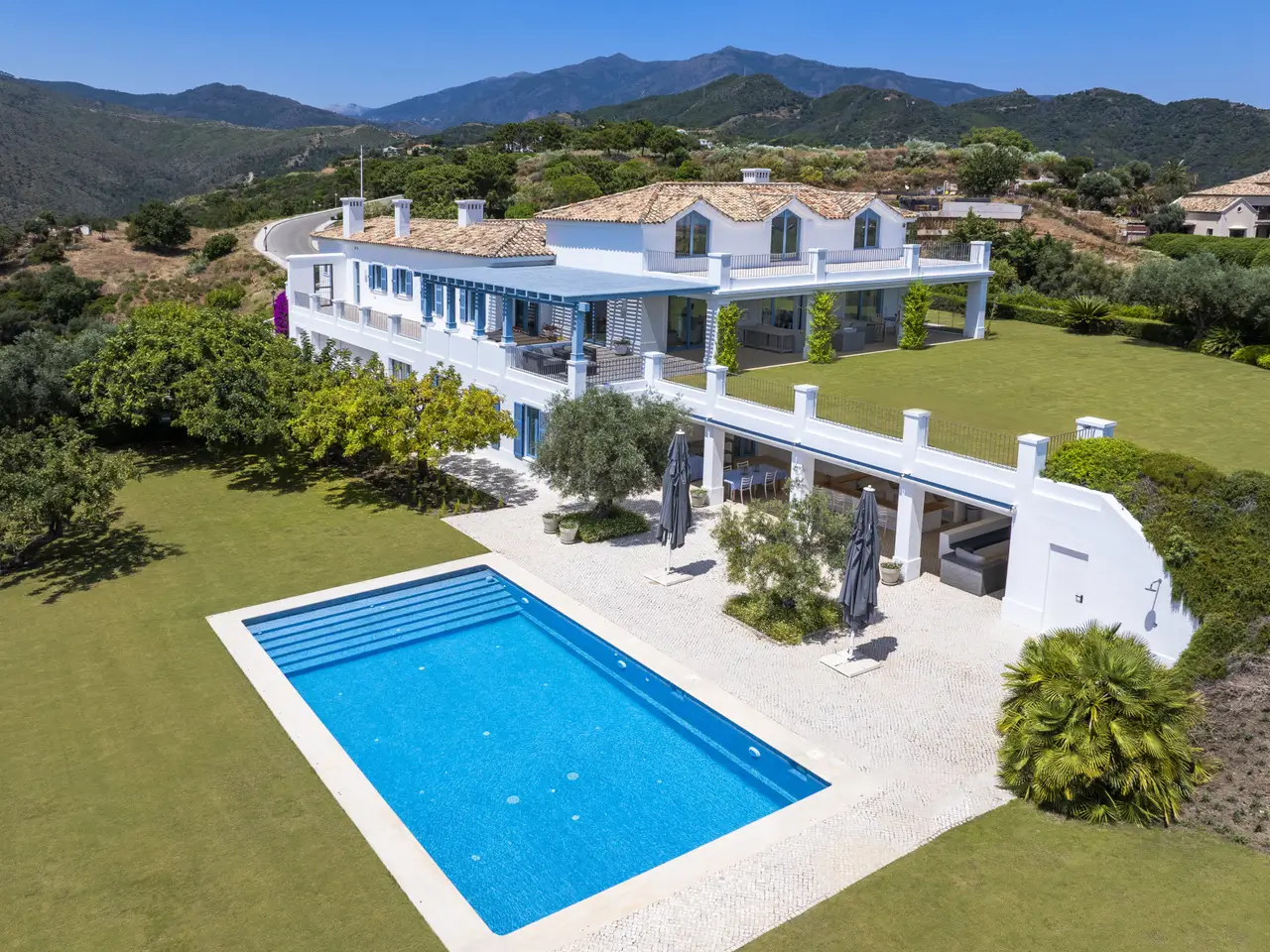 Perched on a rare flat double plot spanning 6.950m2 within the exclusive and secure enclave of Monte Mayor, this cortijo, style villa is a true andalucian sanctuary. Accessed via a 150meter private driveway, the property immediately impresses with its authentic charm, sense of privacy, and sweeping views of the sea and surrounding mountains. Framed by mature pine and olive trees, the estate blends effortlessly into its natural surroundings. Each room and terrace offers a unique and elevated view, wether it´s the glistening Mediterranean, the rugged contours of the mountain foothills, or the beautifully landscaped andalusian gardens. With nearly 700m2 of south-facing interior space, the home is thoughtfully designed for relaxed living and entertaining. Five en-suite bedrooms, expandable to six, are complemented by bright open-plan living areas, a home cinema, and a games room. Outdoor spaces feature a poolside bar, barbecue area, and expansive terraces for year-round enjoyment. The architecture reflects classic andalusian style, with a romantic central patio, whitewashed walls, blue shutters, and a layout that balances family comfort with refined hosting areas. From breakfast in sunlit spaces to shaded afternoon retreats, sunset drinks on the terrace, and dinners under the stars, every part of the home is designed to be enjoyed. Elevated above the bustle of the coast, it offers a peaceful sanctuary close to all the amenities of the Costa del Sol. This is more than a home, it´s an immersion in the natural beauty and traditional elegance of the tranquil andalusian lifestyle. Welcome to your private hideaway above Marbella. Contact us today for your exclusive viewing.