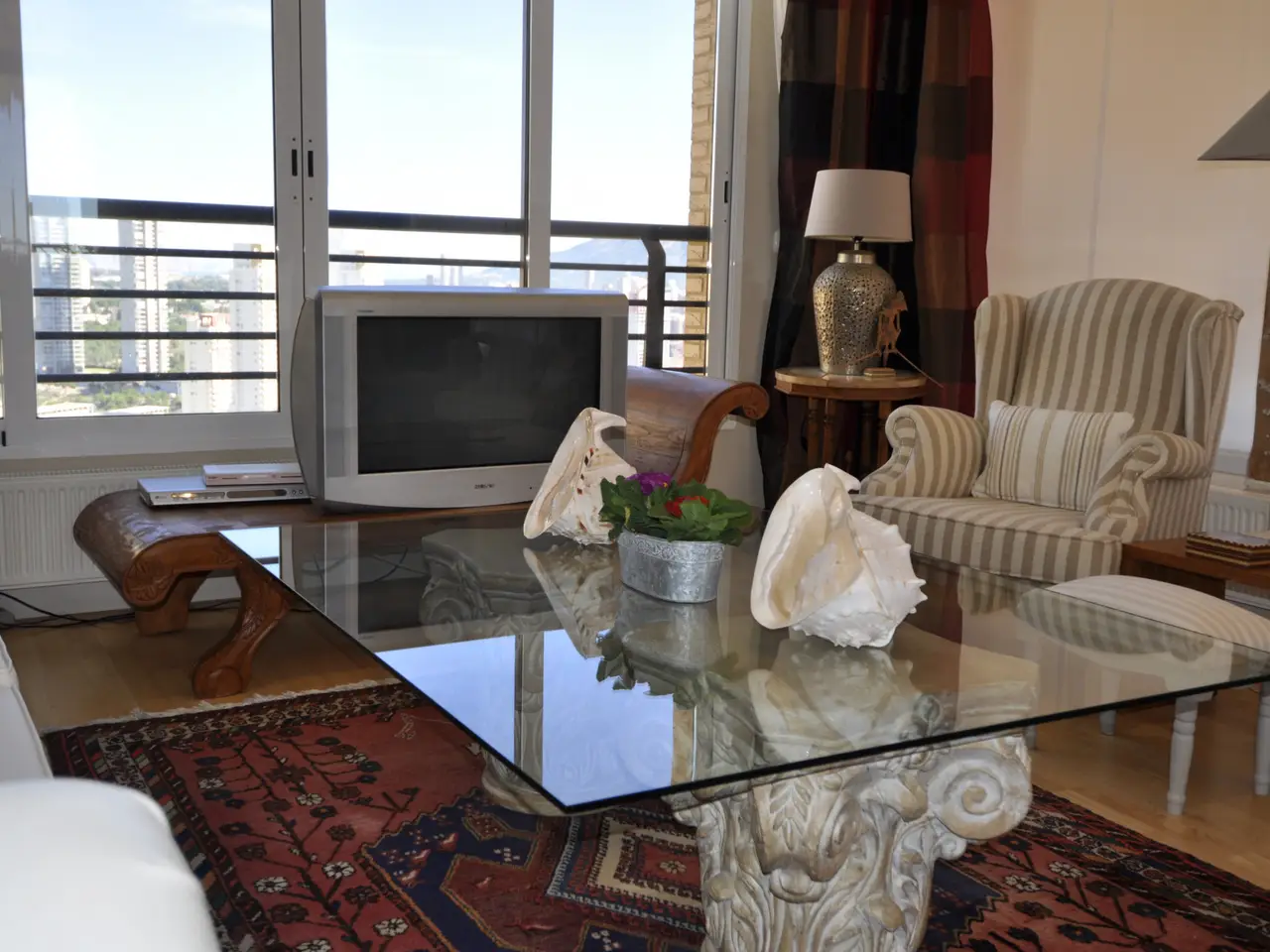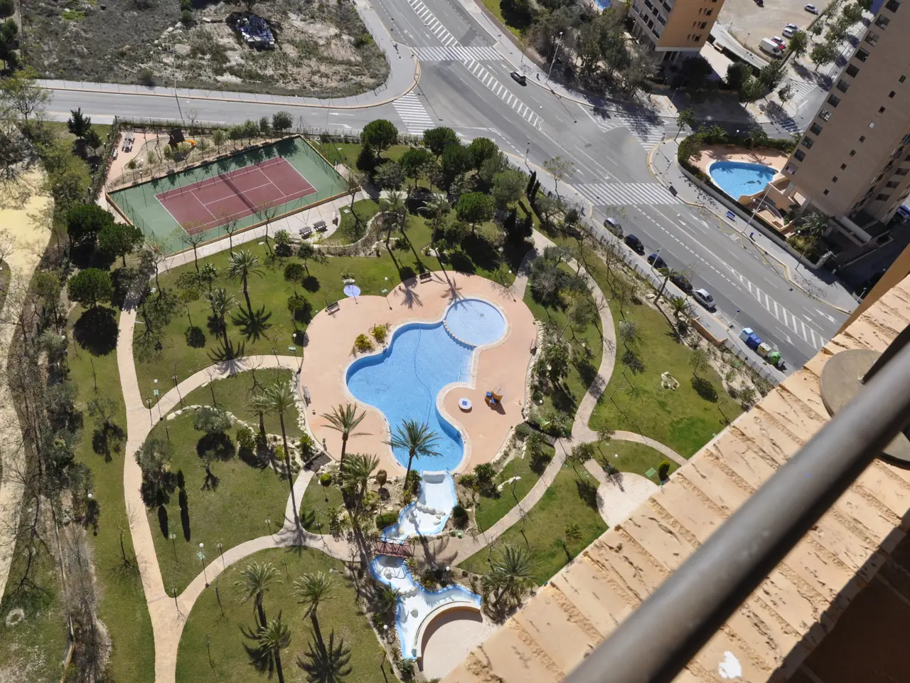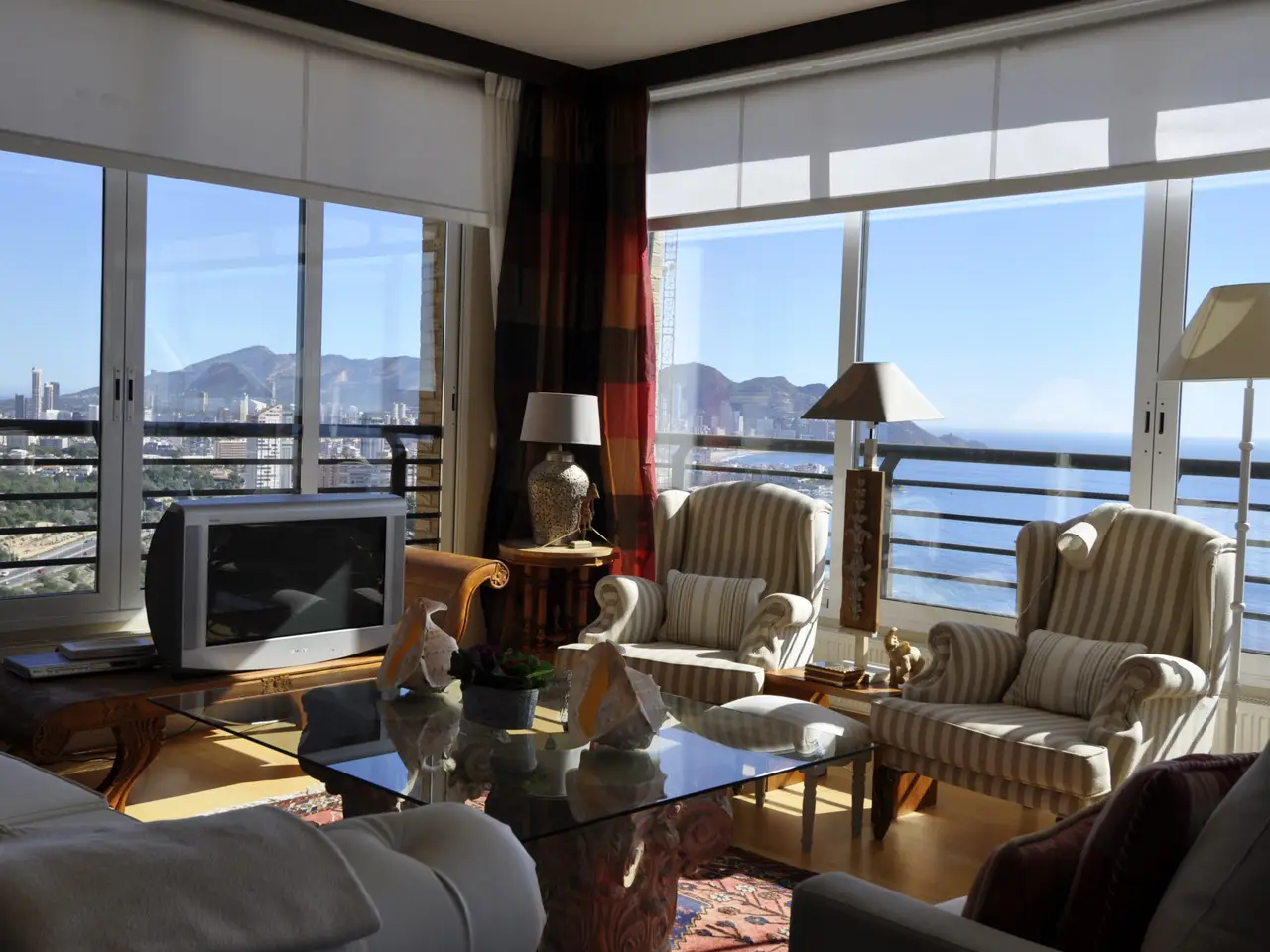 This exclusive and luxuriously appointed penthouse is set in one of the most sought-after areas of Benidorm in Alicante, boasting spectacular sea views in a residential area with access to all types of services. The property forms part of a residential complex with a communal swimming pool, vast gardens, a tennis court, gym, sauna, children’s playground and a car park within the complex itself. It is just 400m from the beach in Benidorm and 2km from the centre. This stylish penthouse is situated on the 27th floor and affords a sunny, southeastern exposure, making the rooms very bright for the most part of the day. The apartment is very private and covers a total area of 265m2 including the terrace, comprising an entrance hall, a spacious kitchen equipped with top-quality appliances and a washing machine, and three bedrooms, (including one master bedroom with a walk-in wardrobe and a large en-suite bathroom with a tub and hydromassage shower). The property also includes two bathrooms with a shower, a generous office which could easily be converted into another bedroom and an elegant lounge which affords the most breathtaking sea views. The lounge, entrance hall, master bedroom and even the en-suite bathroom all enjoy access to the terrace, which gives the apartment an outdoors feel. A set of stairs lead down from the terrace to another large covered terrace which provides an additional 200m2 for exclusive use of the penthouse, which also includes a small storeroom, bathroom with a shower and a machine room. Additional features of the property, built to the highest specifications, include central heating with radiators, hot/cold ductless air conditioning and one parking space.