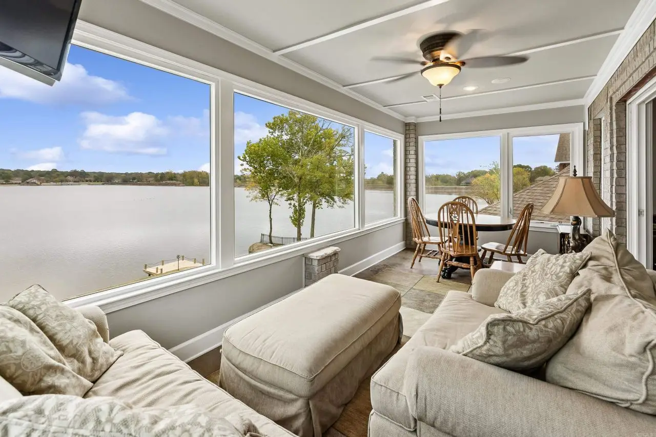 WATER VIEWS IN HURRICANE LAKE! This stunning home features lake views from almost every room that will take your breath away. A private chefs kitchen includes a gas range, double ovens, cherry wood cabinets, and opens to a cozy hearth room with a gas fireplace. The primary suite boasts a private fireplace, a spa-like master bath with a double vanity, and a spacious walk-in closet. Located on the main level, you'll find an additional primary suite, while the home also boasts formal living and dining rooms. Not one but TWO sunrooms perfect for having that morning cup of coffee in peace and enjoying that incredible view. Bonus rooms include a theater room, game room, craft room, spacious office with a kitchen, and a workshop area beneath the home. Outside, the large deck is perfect for entertaining, overlooking the flat, fenced backyard with a retaining wall, wrought iron fence, and private boat slip. This home is a gem!