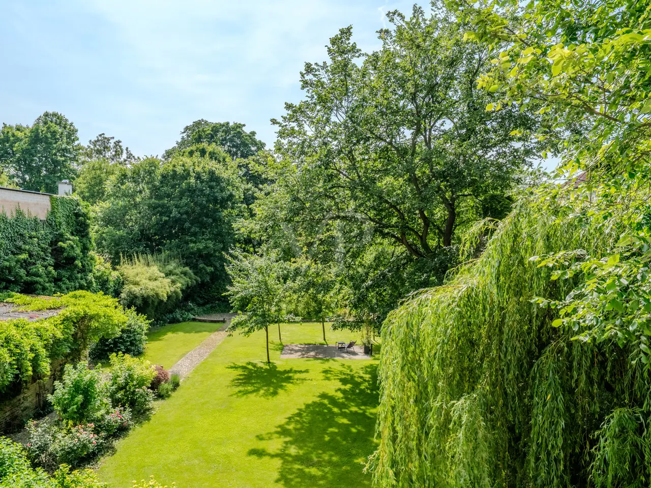 Historic Pankow villa with modern comforts and park-like garden This charming beauty, a classic Pankow villa in a special architectural style, combines timeless elegance and historical charm on around 225 m² of living space. Seven spacious rooms, a large hallway, a cozy kitchen as well as three bathrooms and a guest WC offer a comfortable home with historical flair. Formerly used as an embassy residence, the villa has been lovingly renovated and converted over several stages. In the last modernization phase in 2018, the bathrooms and living areas were brought up to a modern standard, taking into account the historical features. Generosity and elegance on all levels As you enter through the practical vestibule, you are greeted on the first floor by a spacious, representative hallway that connects all the rooms on this level. To the right is a spacious kitchen including a timelessly elegant and very generous fitted kitchen. A historic sliding door opens up the view into the impressive living area. This is divided into a dining area with a small bay window and a seating area with a wonderful view of the dreamlike property through the panoramic window. The terrace in front, newly built in 2018, invites you to spend cozy hours with family and friends - an ideal place to unwind. A stylish door with a glass insert takes you back into the hallway. A practical guest WC rounds off this level and underlines the well thought-out floor plan. Versatile usage options on the upper floor An elegant wooden staircase provides access to the upper floor. Three spacious rooms, which can be used flexibly, offer space for the whole family. Another small room can be used as a study or guest room. A stylishly designed bathroom with a walk-in shower and large double washbasin is another highlight on this level. The converted attic accommodates two large rooms. A modern bathroom with bathtub is also available here. Space for hobbies and leisure The property has a full basement and offers over 100 m² of usable space to meet your individual needs. There are three large cellar rooms including technical equipment and a utility room with washing machine connection. A large multi-purpose room can be used as a sports or fitness area. The adjoining shower room is a perfect match. The modern gas condensing boiler (built in 2015) provides comfortable warmth throughout the house. Park-like plot with diverse potential In addition to the unique Pankow location, the property, which is over 1300 m² in size, has a lot more to offer. The garden, which was designed by a garden architecture firm, allows you to forget the stress of everyday life and the bustling city. The adjoining park-like embassy property of the Republic of Togo guarantees an unobstructed view of the greenery. The neighboring buildings allow for further development on the rear part of the property, thus opening up space for additional possible uses. Including an old coach house for a studio or guest house, for example. Your dream of historical elegance and modern living comfort This extraordinary villa combines a stylish ambience with the highest level of living comfort and offers a unique opportunity in the sought-after Pankow district. Come and see this gem for yourself and arrange a viewing today - we look forward to hearing from you!