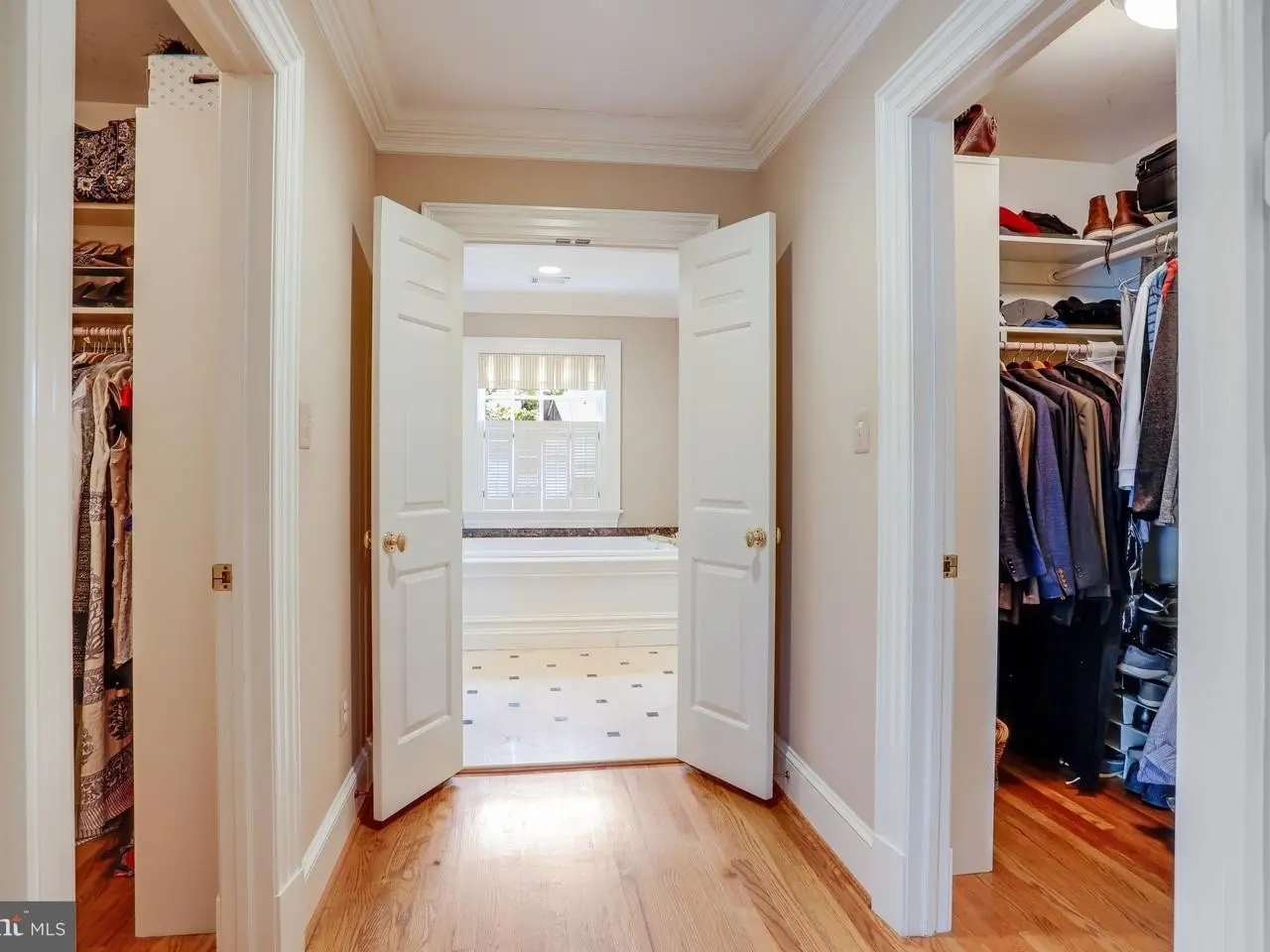 Stunning Colonial on a quiet and peaceful tree lined street in the heart of the Springfield subdivision. Springfield is a friendly neighborhood with well manicured lawns and a strong sense of community.  It sits in the sweet spot of commutes to downtown Washington DC and work points in Virginia and Maryland off nearby 495 and 270. The Ride on Bus and Metro bus are a short walk away and the metro is about 2 miles. This beautiful home was built by Meade Bell and reimagined and expanded by his son, the renowned Frank Bell. With it's classically executed exterior and charm infused interior, it offers nearly 6000 square feet of space. Upon entering the large foyer, you will notice beautiful millwork throughout. The main level features a sprawling open kitchen/family room/breakfast room with nine foot ceilings and a fireplace. French doors take you from this space to a large flat fully fenced grassy yard with flagstone patio and a covered eating portico. Also on this level is a grand entertaining sized dining room and an elegant living room with fireplace. On the upper level, there are 5 bedrooms, 3 full baths and a laundry room, accessed by wide and gracious halls. In the Primary bedroom there is a third fireplace and a spa like bath with a soaking tub, separate shower and double vanity. The lower level has three very large rooms - a home office, a game room and a recreation or media room, as well as ample storage in a separate storage room and utility room. Other amenities include a garage, a new roof, a multi zoned HVAC, and built-in speakers in the ceilings of the kitchen/family room, dining room, and primary bedroom. This property is served by the highly rated school district of Woodacres/Pyle/Whitman. Both the Woodacres Elementary school and playground, and the Little Flower School are a very short walk away. You can also walk to Whole Foods, Kenwood CC and the new Westbard square with its restaurants and shops. This is a rare find in an amazing location!