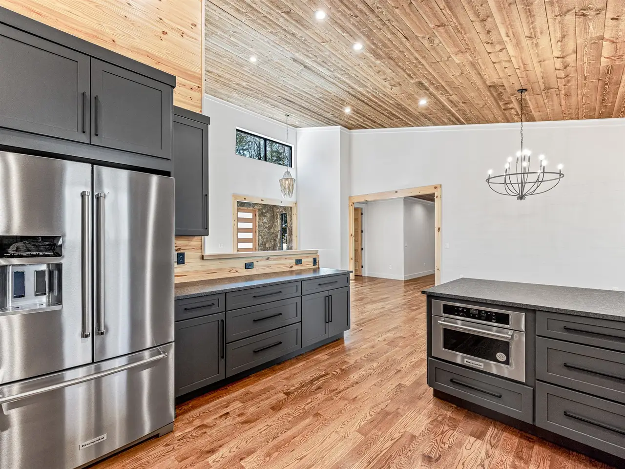 Welcome to this custom-built gem by Joe Bryson Construction, one of Brevard's top builders. This stunning single-level home greets you with a grand rock entry and a charming stone breezeway that connects the detached two-car garage to a spacious mudroom. Inside, you'll find soaring wood-clad cathedral ceilings, an open layout, and a striking fireplace with gas logs at the heart of the home. The kitchen is thoughtfully designed, perfect for everyday living or entertaining. Three inviting bedrooms feature custom accent walls, plus there's a bonus room ideal for a home office or gym. Quality craftsmanship shines throughout - from the stacked stone in the entryway to the fine finishes in every room. Bi-folding glass doors open onto a large private deck overlooking a peaceful, wooded setting. A perfect blend of comfort and style!