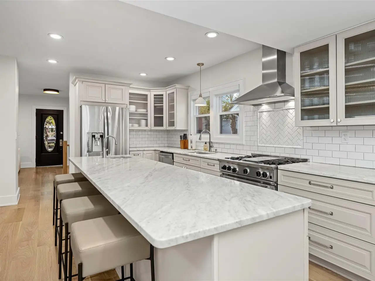 Welcome to 967 Ann Street — a beautifully updated, in-town Birmingham gem that blends timeless charm with modern luxury. This classic American Foursquare Colonial has been meticulously renovated to meet today’s lifestyle, all while preserving its historic character. Step onto the inviting covered front porch, the perfect spot for morning coffee or evening relaxation, and enter a bright, open main floor filled with natural light and showcasing the gorgeous wide plank white oak floors. The heart of the home is a chef’s dream kitchen featuring a 10-foot island featuring with prep sink, beverage fridge, built-in convection microwave, and top-of-the-line BlueStar gas range with indoor grill. All appliances are stainless steel, seamlessly integrated into a sleek, functional design ideal for cooking and entertaining. Enjoy spacious and elegant living and dining rooms, along with a cozy breakfast nook for casual meals. A stunning full bathroom and a stylish, convenient mudroom/laundry room complete the first floor. Heading upstairs, you’ll admire the craftsmanship of the modern railing, a unique touch that sets the tone for the second level. The primary ensuite is a private retreat, featuring a custom double vanity and a spa-like marble twin shower with built-in benches. Two additional bedrooms share a stunning marble bathroom with a deep Jacuzzi tub. The finished basement with egress window offers endless possibilities—whether you're dreaming of a home theater, gym, or dedicated home office. Outside, enjoy the fenced-in, manicured backyard, ideal for relaxing or entertaining, with easy access to the detached 2-car garage. All of this, just steps from everything downtown Birmingham has to offer—shopping, dining, parks, and top-rated schools. This is more than a home—it's a lifestyle.