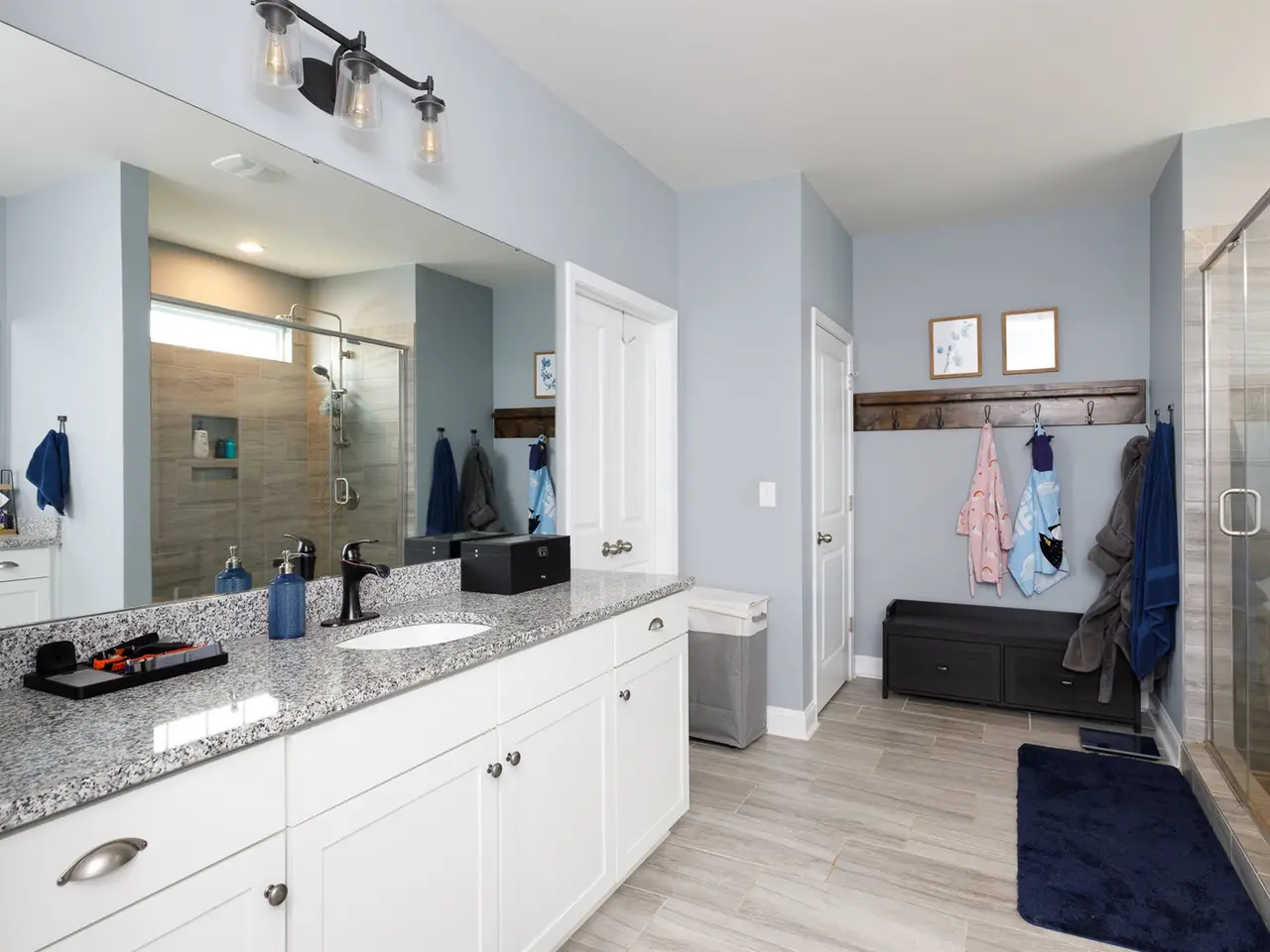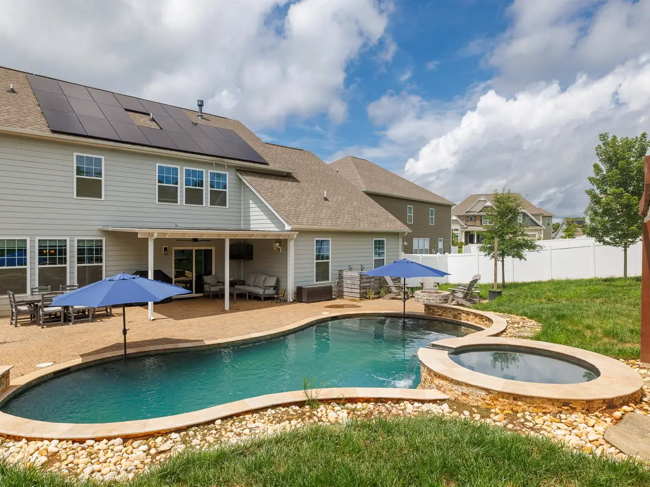 Located in the desirable Cypress Point subdivision in Lake Wylie, this stunning 5-bedroom, 4.5-bath home offers a spacious and functional layout with high-end finishes throughout. The main level features a luxurious primary suite with dual vanities, a tiled shower, and a walk-in closet, plus a secondary bedroom with a private ensuite?perfect for guests or multi-generational living. The open-concept main living area boasts a chef's kitchen with quartz countertops, gas cooktop, double wall ovens, and a walk-in pantry. Upstairs, a generous bonus room offers flexible living space. Step outside to a private backyard retreat complete with a covered rear porch, paver patio, firepit, and a resort-style pool with integrated spa. Additional highlights include an oversized side-load 2-car garage, drop zone, and both front and rear porches. Cypress Point amenities include a clubhouse, pool, fitness center, game court, picnic area, and playground. This one checks all the boxes!