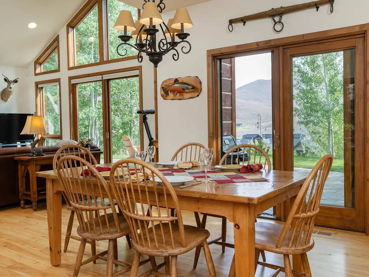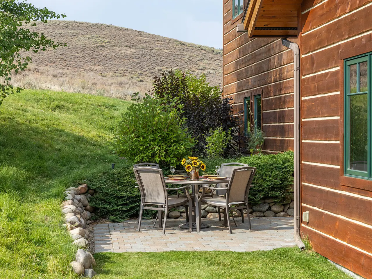 Beautiful Indian Creek home with split-log construction and timeless mountain design. Situated in a cul-de-sac on a premium elevated lot adjacent to thousands of acres of BLM land, the home offers privacy, abundant natural light, and breathtaking mountain views. Exceptional craftsmanship throughout. Primary bedroom on main level. Mature landscaping and spacious paver patio overlooking the IC pond