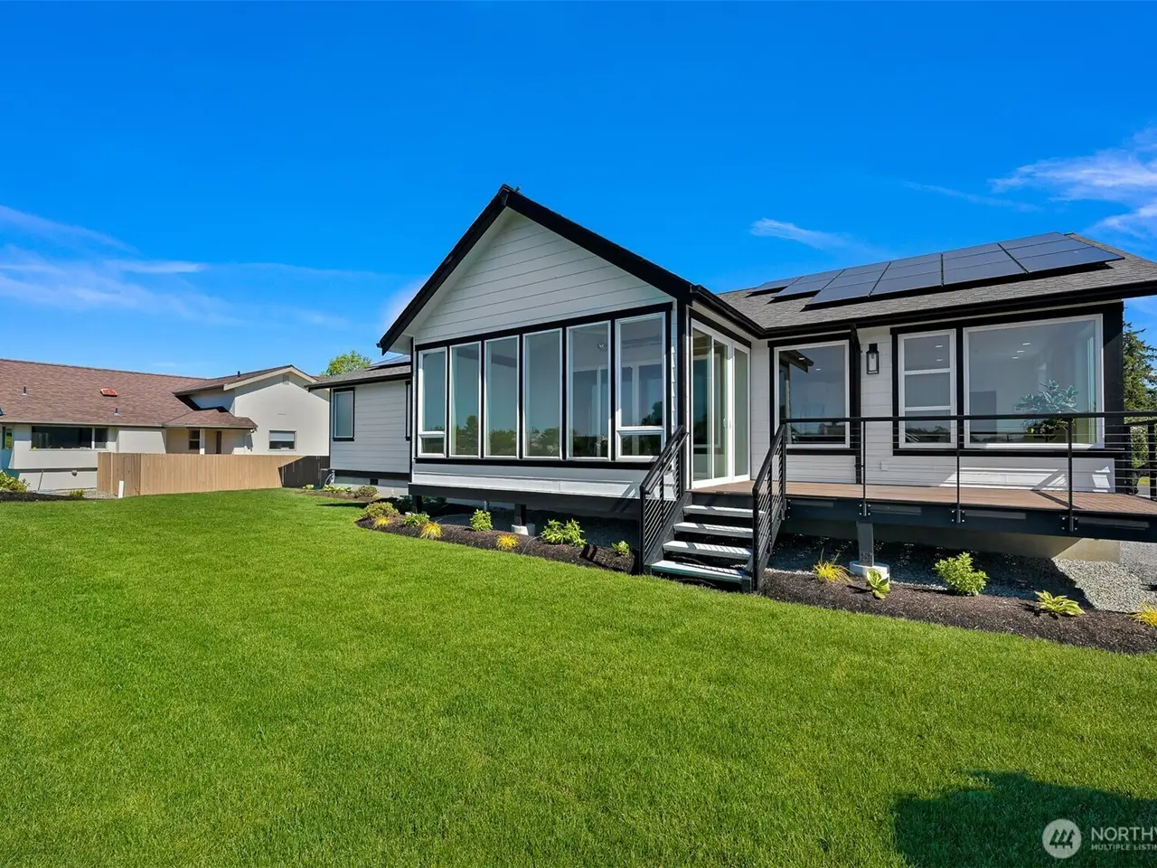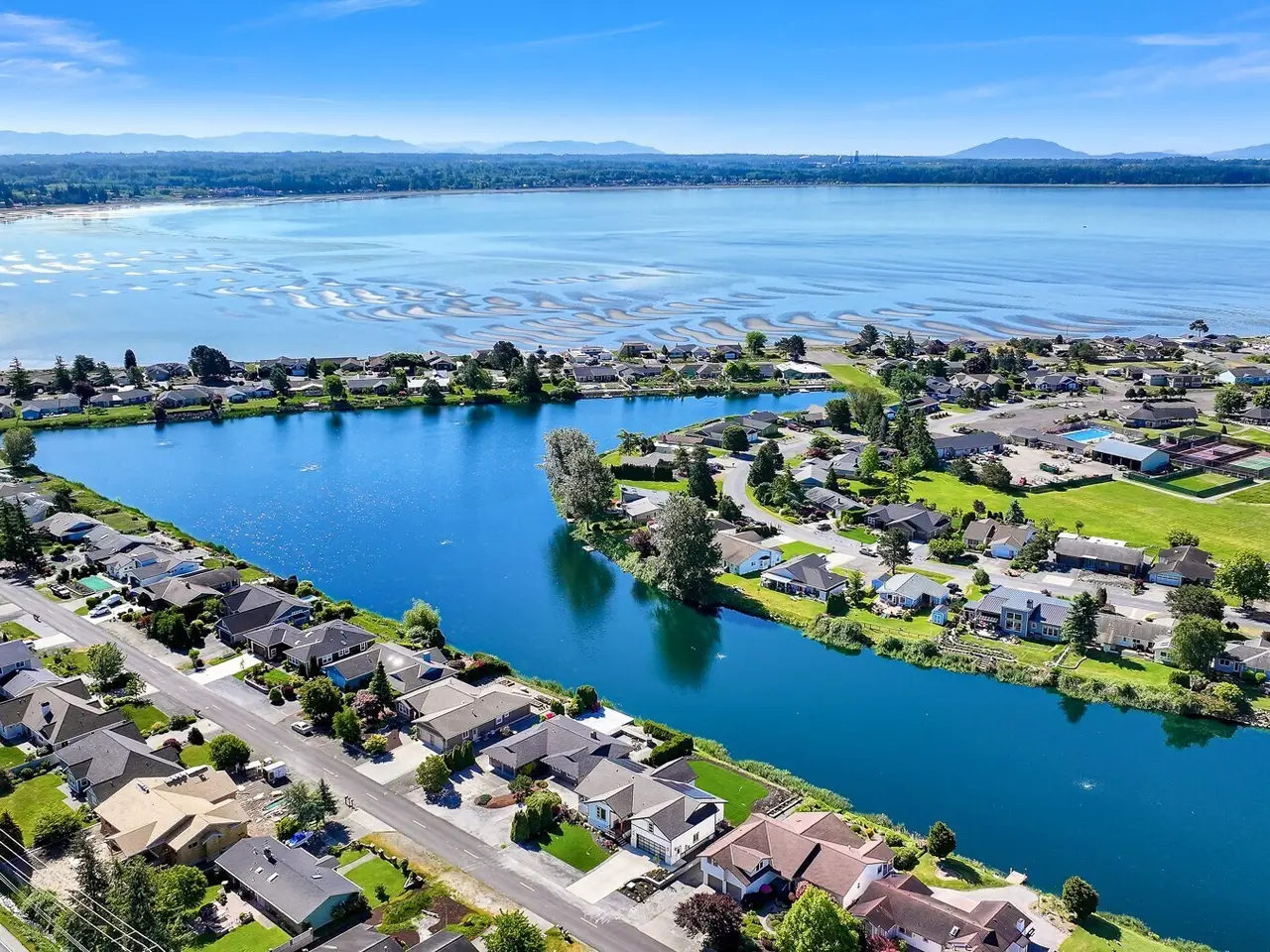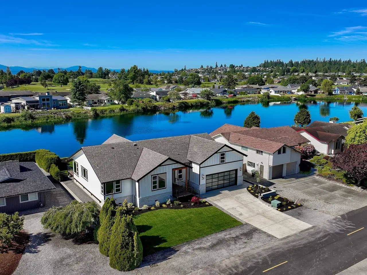 Absolutely every detail thoughtfully designed and executed at this brand new lakefront Birch Bay Village STUNNER! Lives like a rambler with only a bonus space on the upper level, this is modern Pacific Northwest living at its' finest! Blurring the line between indoor and outdoor, you'll love the enclosed sunroom and the wall of windows that creates a light and bright sun-drenched space that just simply feels good! All the must have boxes are checked: upscale finishes, high ceilings, gourmet kitchen with massive waterfall island and walk-in pantry. The luxurious primary suite is privately tucked away from the other two bedrooms. Unrivaled Birch Bay Village amenities with 24-hour security. BONUS: energy efficient $37K solar package keeps the costs low!