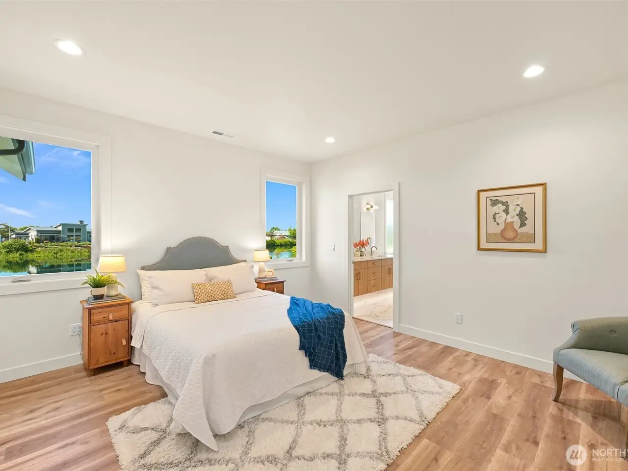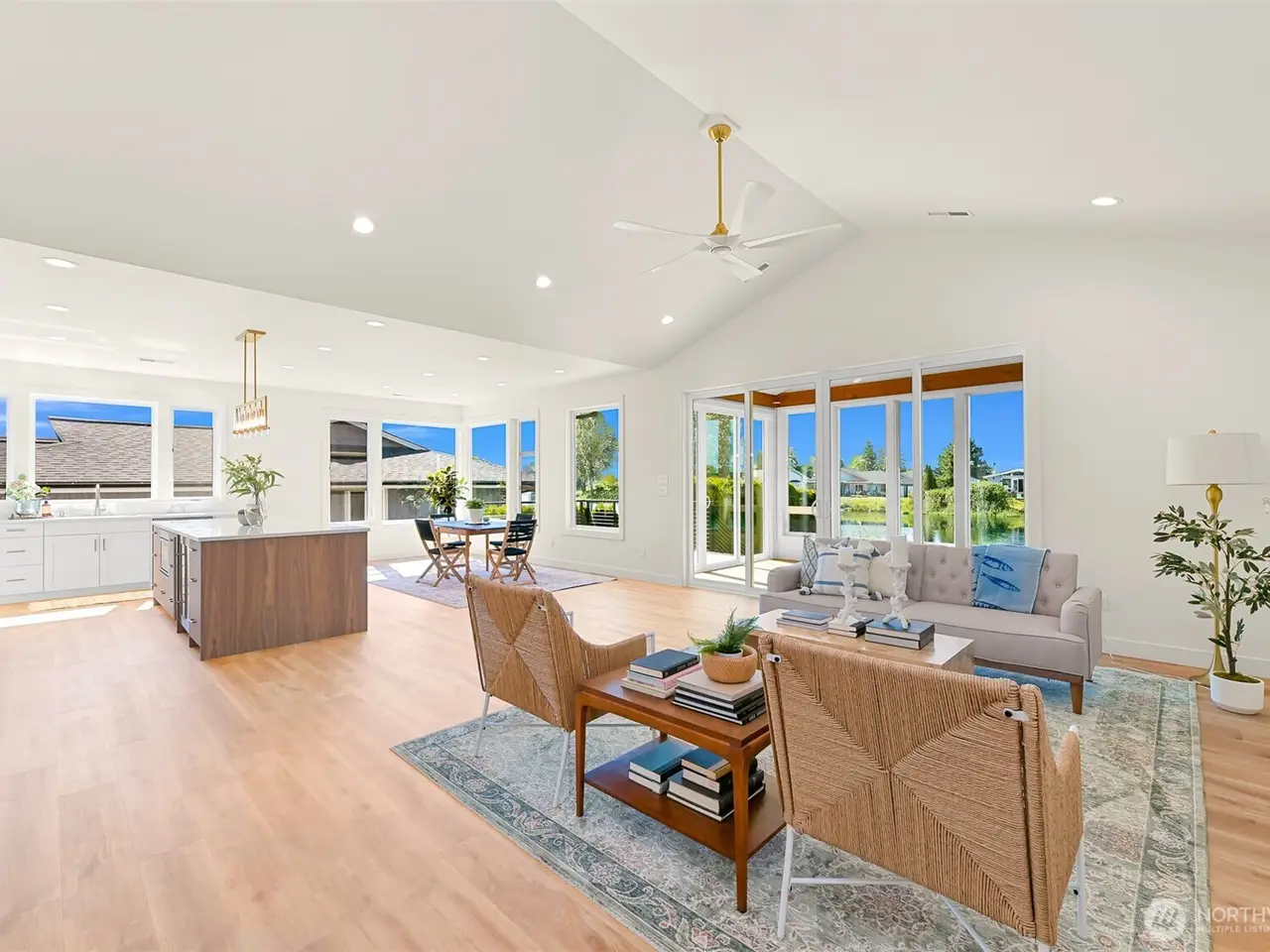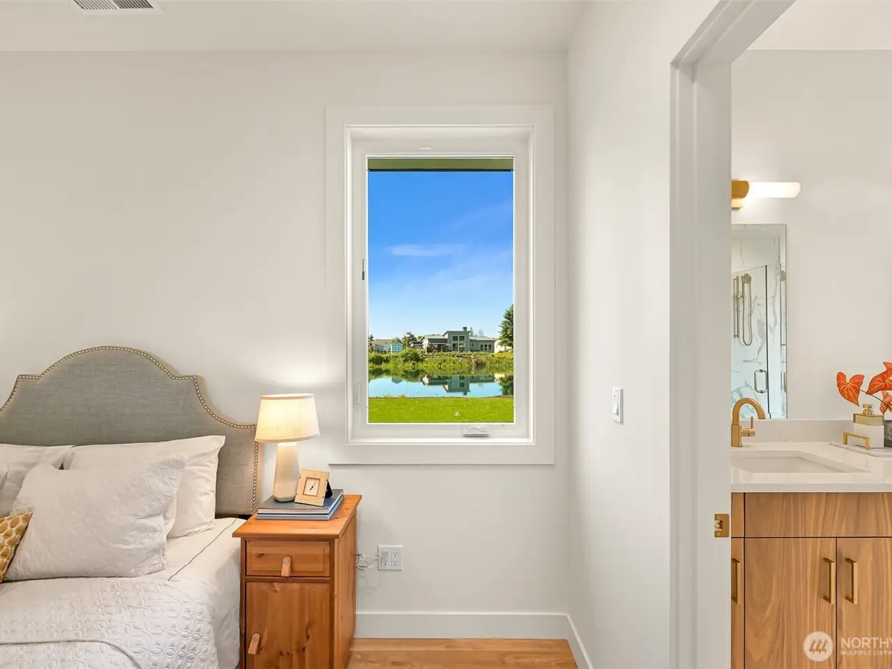Absolutely every detail thoughtfully designed and executed at this brand new lakefront Birch Bay Village STUNNER! Lives like a rambler with only a bonus space on the upper level, this is modern Pacific Northwest living at its' finest! Blurring the line between indoor and outdoor, you'll love the enclosed sunroom and the wall of windows that creates a light and bright sun-drenched space that just simply feels good! All the must have boxes are checked: upscale finishes, high ceilings, gourmet kitchen with massive waterfall island and walk-in pantry. The luxurious primary suite is privately tucked away from the other two bedrooms. Unrivaled Birch Bay Village amenities with 24-hour security. BONUS: energy efficient $37K solar package keeps the costs low!