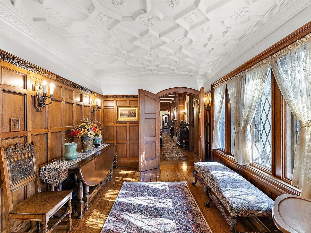 There are homes that impress, and then there are estates that transcend time. Inspired by the regal architecture of Europe’s grandest castles, this extraordinary Bloomfield Hills estate offers a rare fusion of history, artistry, and unmatched privacy on over eight breathtaking acres. This one-of-a-kind residence offers unrivaled seclusion, elegance, and architectural splendor. Surrounded by mature trees, manicured gardens, and expansive green lawns, the property evokes the tranquility of a private sanctuary. From the moment you arrive, the home’s old-world craftsmanship is on full display, featuring intricate millwork, hand-carved wood details, ornate plaster ceilings, and rich finishes that reflect a bygone era of artistry and refinement. A grand foyer welcomes you into expansive formal spaces designed for elegant entertaining, including a stately library, formal dining and living rooms, and a magnificent ballroom reminiscent of classic European estates. Among the estate’s most captivating features is the bar area, adorned with original tile imported from Napoleon Bonaparte’s carriage house in France, an extraordinary historical detail rarely found in private homes. Outdoors, the estate continues to impress. Rolling lawns, wooded enclaves, and a sparkling swimming pool provide an exceptional backdrop for outdoor living. A private tennis court and guest house is also located on the grounds. This is more than just a home. It's a legacy property of rare distinction. With timeless beauty, ultimate privacy, and proximity to the best of Bloomfield Hills, this estate offers a lifestyle reserved for the truly discerning.