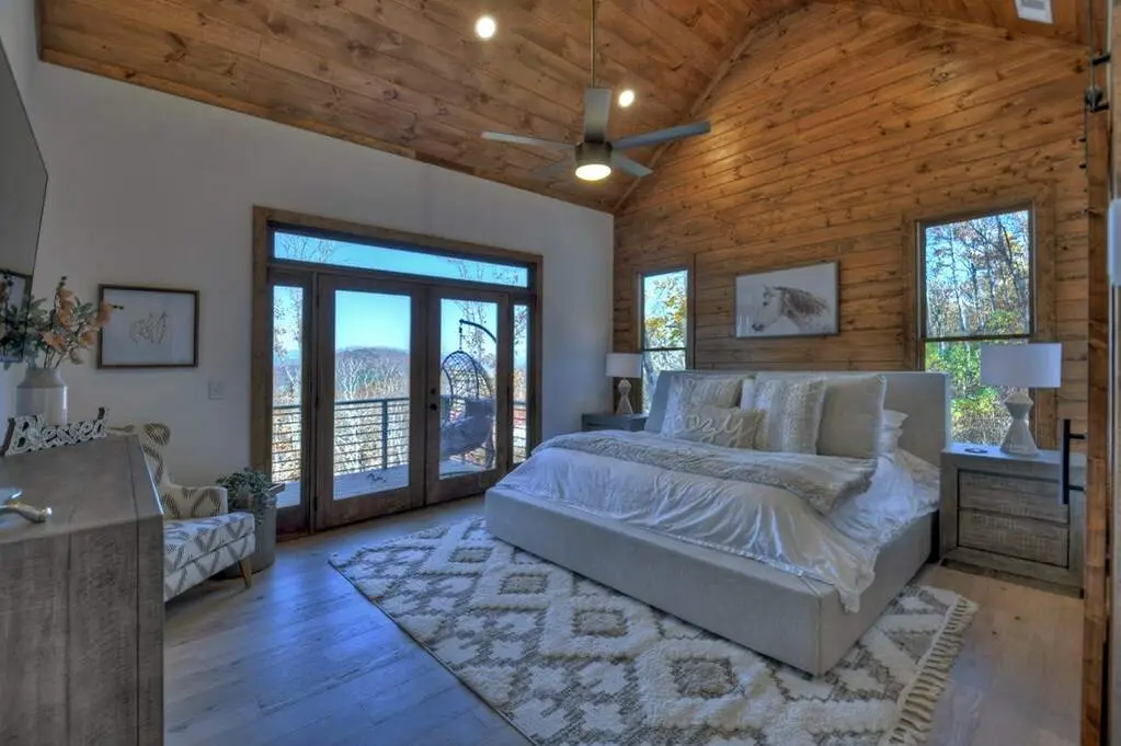 As seen on HGTV - Luxury mountain escape with STUNNING, unobstructed SUNSET VIEWS overlooking the Cohutta Wilderness! Upscale gated community with all paved roads, underground power and high speed internet. Professionally designed with high-end finishes and upgrades throughout, with an open concept floor plan that features vaulted ceilings and floor-to-ceiling windows to take in the incredible long range views. Meticulously maintained 4 bedroom, 3 bath plus additional sleeping loft with wow factor views from every room! Well-appointed chefs kitchen with separate dining area for large family gatherings. Plenty of outdoor entertaining areas including oversized covered porch off great room featuring a must-have outdoor fireplace and dining area overlooking one of the best views in Blue Ridge!. Terrace level features 2 additional guest suites, wet bar, game room and additional covered porch area with hot tub. Whole house water filtration system. Top of the mountain with plenty of parking, perfect for luxury rental program, full time living or much needed mountain getaway. Scenic drive conveniently located to historic downtown Blue Ridge, as well as, hiking, trophy trout fishing, Lake Blue Ridge, horse back riding, shopping, dining and more!