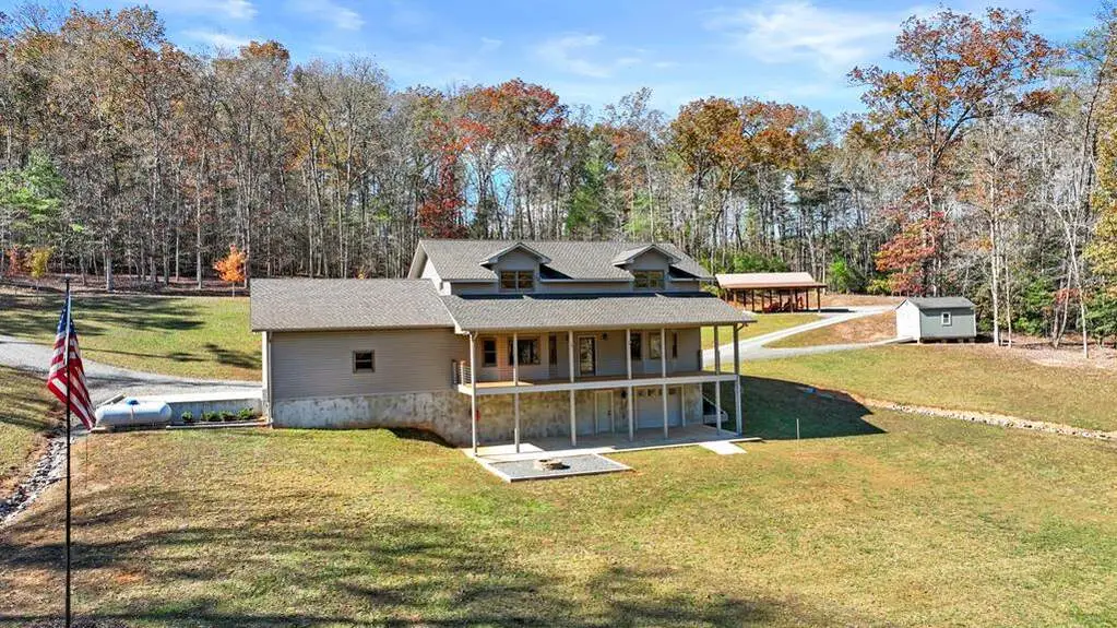 Noisy Fightingtown Creek front property! Beautiful approach into the property. This property presents exceptional potential, boasting 90' feet of pristine Fightingtown Creek frontage. Welcome to lot 2 Hudson Hollow where clear, rushing waters teem with trophy trout. Set on nearly two acres , the land blends open pastures with wooded areas, creating a scenic and versatile landscape. This 3-bedroom, 3.5-bathroom home is conveniently located near Blue Ridge and McCaysville, offering easy access. Built for durability, the home features 50-year architectural shingles, 2x6 insulated exterior walls, Andersen windows, a 400-amp electrical system, and hard-wired security cameras. The main floor showcases soaring 10-foot ceilings, with 9-foot ceilings on the basement and upper levels. Inside, spacious bedrooms with walk-in closets complement a high-end kitchen, washers and dryers on each floor, an 80-gallon air compressor, hose and drop cord reels, a large safe, and a generator. This property is a blank canvas ready for your vision-whether you're an investor, seeking a serene retreat, or looking for a full-time residence, this is A DO NOT MISS!