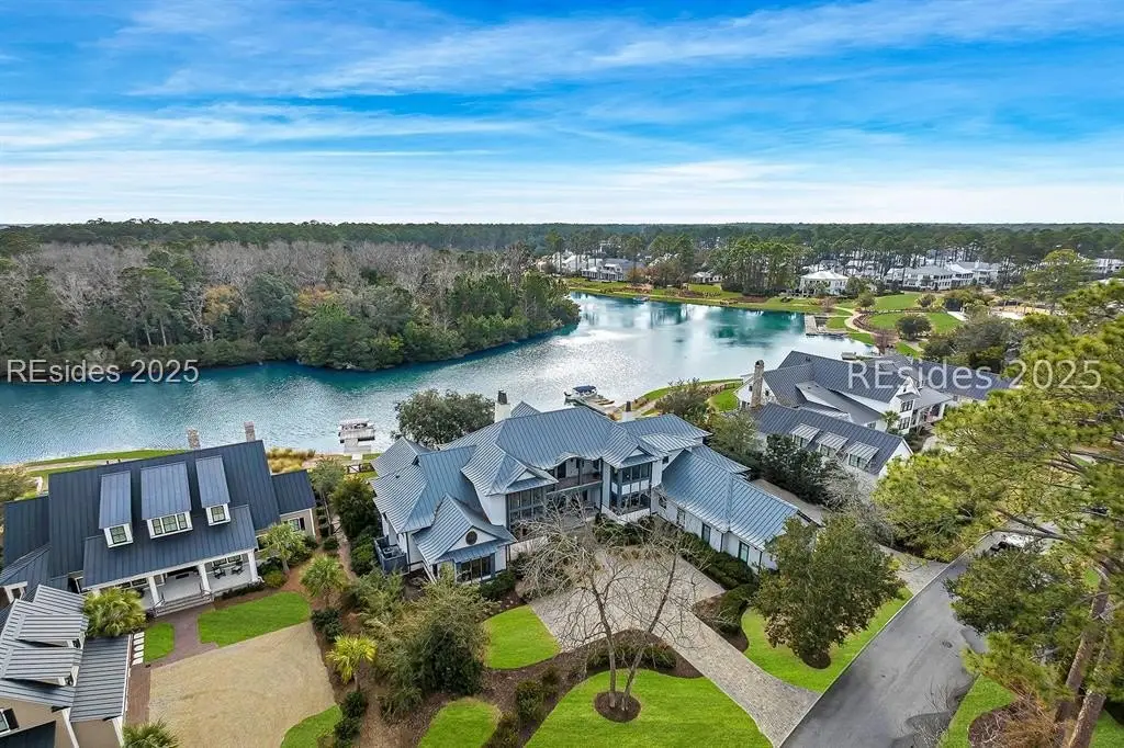 On the beautiful inland waterway in River Road, 85 Waterfowl offers unbelievable space with 4 bedrooms and 4 full/2 half baths, including large primary wing with attached office/exercise room/bonus bedroom. With majestic water views from the wrap-around porch, fenced backyard and private dock, the home is perfect for entertaining with large chef's kitchen plus auxiliary kitchen, separate bar and wine cellar, multiple indoor gathering spaces, and huge screened-in porch. Filled with custom details and steps from all the Palmetto Bluff amenities, including member-only pool, fitness center, and trails, this is the ideal Lowcountry luxury home.