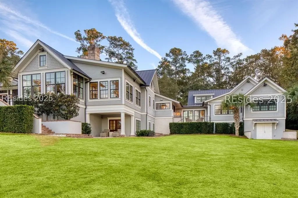 Experience Lowcountry luxury and coastal charm at its finest in this private, gated 10-acre waterfront estate. This preeminent property gracefully commands over 658 feet of the pristine May River shoreline within the highly sought after Palmetto Bluff community. Exuding timeless coastal beauty, the estate-known as Heron Hall-is a true sanctuary where nature and refined living exist in perfect harmony. Offering panoramic water views, impeccable design and endless amenities, this expansive compound includes a main residence and a fully appointed guest house, offering a total of 9 bedrooms, 9 full baths, and 2 half baths - providing both convenience and privacy for family and guests alike. Step inside to discover interiors with unparalleled attention to detail including exquisite millwork, reclaimed wood flooring, and soaring beamed cathedral ceilings. Each living space captures breathtaking panoramic views, blending timeless architecture with modern luxury. The private primary wing is a serene retreat with sweeping river and marsh views, dual spa-inspired bathrooms, and expansive custom closets. The heart of the home is the fully appointed gourmet kitchen, open to the breakfast and family rooms for effortless gathering. Formal and informal living and dining rooms invite both sophisticated entertaining and relaxed day-to-day living. The lower level offers exceptional entertainment spaces with media and game rooms, a temperature-controlled wine room, craft and wrapping room, pressing room, two bunk rooms, and a private guest suite with its own entrance. Outdoor living is equally spectacular - a spacious screened porch, infinity-edge pool, and outdoor fireplace create the ultimate setting to fully embrace the lifestyle this exceptional home affords. Additional highlights include extensive conditioned storage, five oversized garage bays, two additional garages for bicycles and golf carts, smart home technology, advanced security, a central mechanical building, and a full-estate generator. The highly acclaimed Montage resort community of Palmetto Bluff is a 20,000-acre guard-gated community nestled along the May River between Hilton Head Island and Savannah, Georgia. This Lowcountry masterpiece is truly a canvas for a life lived with passion and purpose and has been curated for comfort, hospitality and privacy.