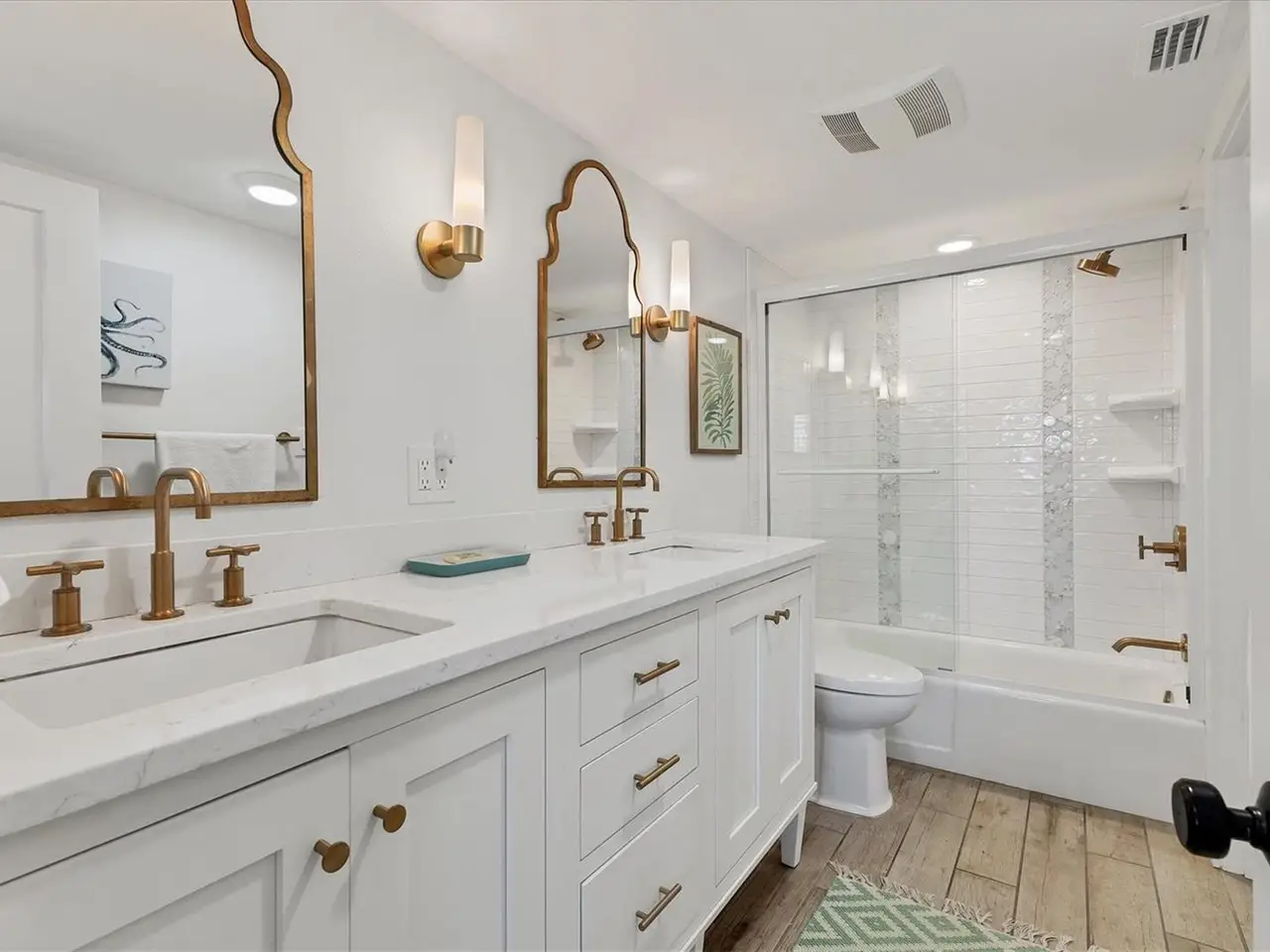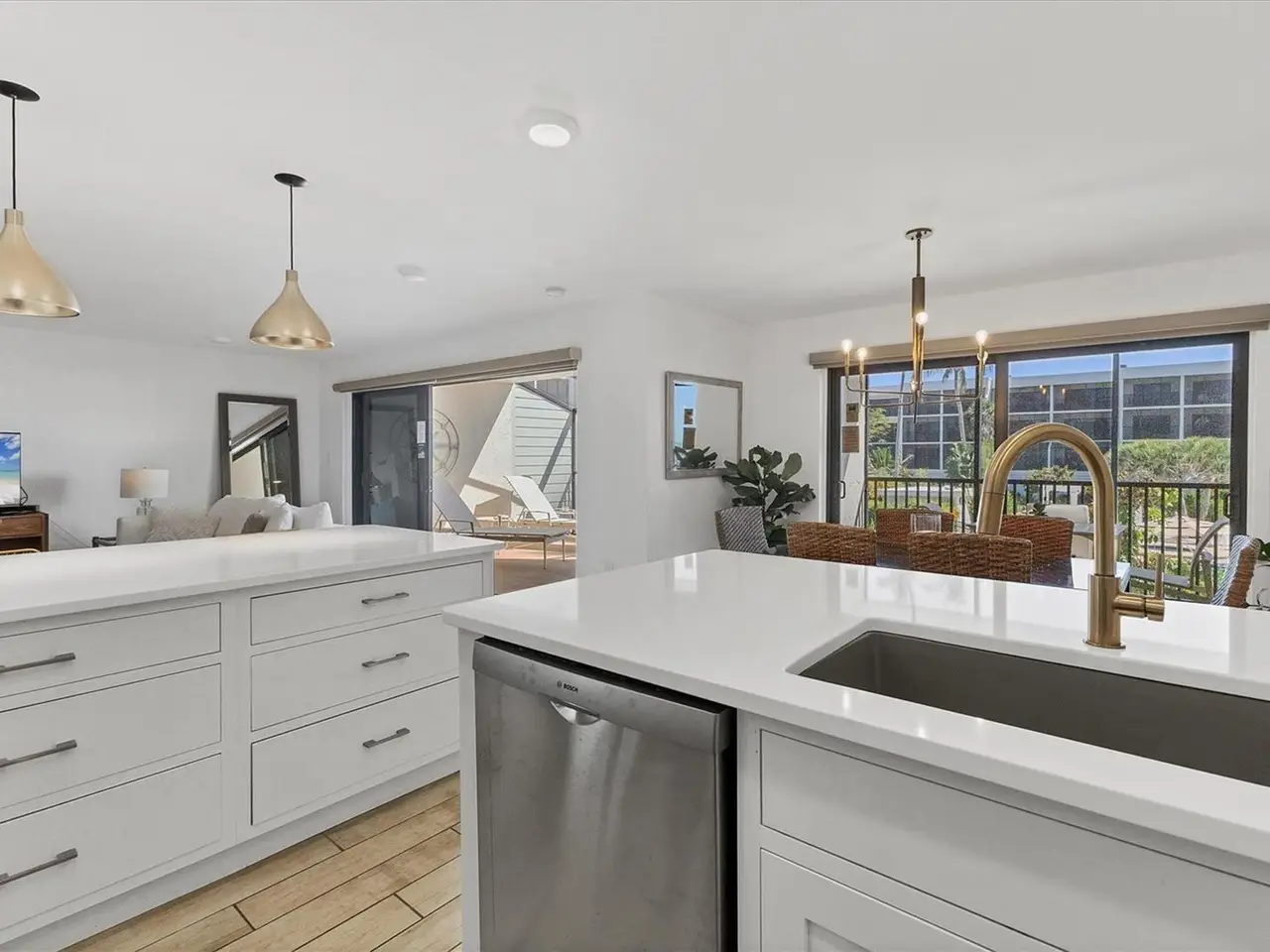 Now's your chance to own a piece of paradise! Breathtaking, pool and GULF views from the extra large enclosed lanai! Renovated down to the studs in 2017 this 2 bed, 2 bath has a completely new layout! Kitchen has new appliances and elegant quartz countertops. Custom Starmark cabinetry with hidden hinges and flush inset doors along with Kohler and Brizo hardware are found both in the kitchen and baths. Primary has large walk-in shower. New light fixtures and recessed ceiling lights. Tile floor throughout looks like wood but durable and easy to clean! Plantation shutters and impact glass on windows and lanai doors. New electric, plumbing and HVAC. Not a detail was missed in this must see condominium! Unit includes a parking space, storage closet and use of golf cart lot. Resort - like amentities include a large heated swimming pool, lighted tennis courts, patios for BBQ's and elevators for easy access. Enjoy walks on Boca Grande's coveted white sandy shoreline, take a golf cart ( included in sale) to the nearby bike path and head downtown to enjoy the many restaurants and shopping or simply relax and watch the sunset from your lanai.