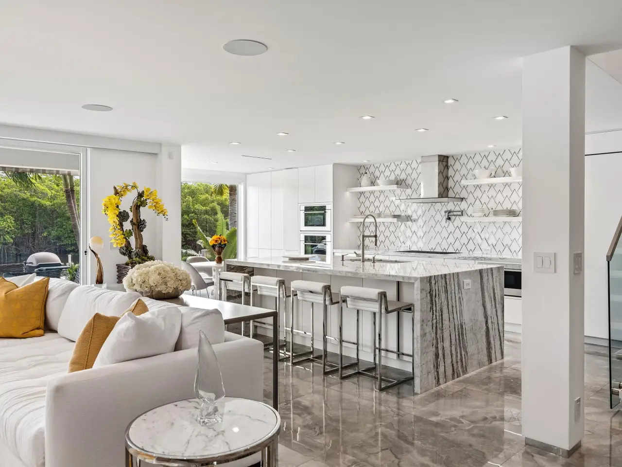 A bespoke masterpiece of contemporary design awaits within the coveted, guard-gated enclave of Boca Marina Yacht Club. This exceptional 4-bedroom townhome, encompassing 3,748 square feet, has been masterfully renovated with museum-quality materials and notable architectural detail, delivering the ultimate South Florida yachting lifestyle. The residence's offers a private concrete deepwater 50 foot dock, ensuring swift, no-fixed-bridges passage to the Atlantic Ocean. Interior, natural light illuminates a dramatic glass staircase and an open living area where a full window-wall of impact glass sliders seamlessly transitions to the waterfront loggia.