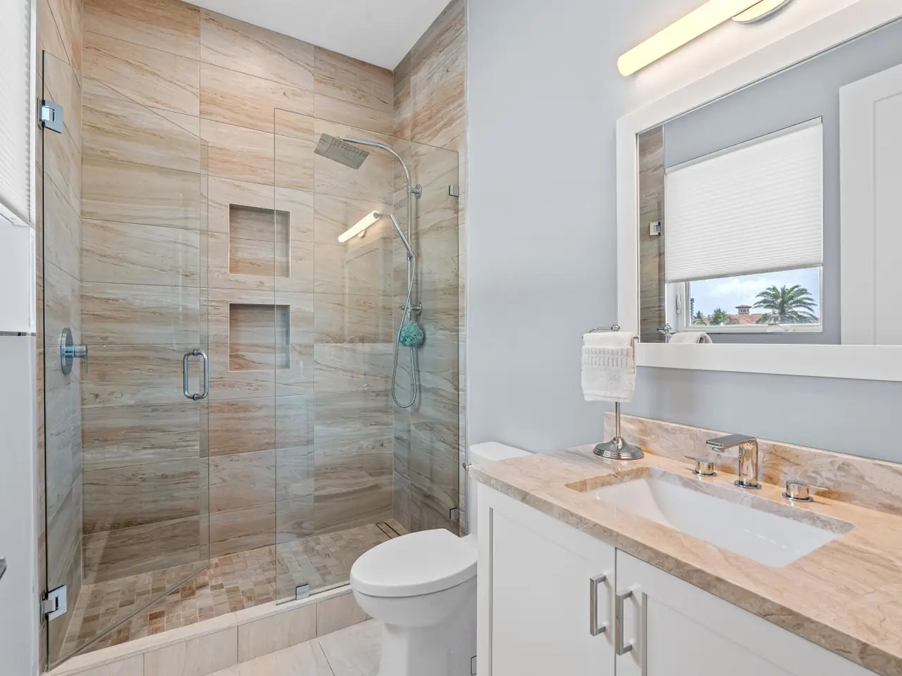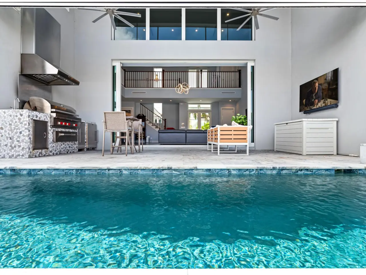 807 Dover Street, a 2021 custom built in Boca Raton's exclusive Bel Marra on 85+/- feet of waterfrontage, and direct ocean access with no fixed bridges, which offers a seamless blend of contemporary and classic design. Inside, high ceilings and premium finishes define the open, light-filled spaces. The chef's kitchen features high-end appliances with natural gas and is complemented by a dedicated wine room. The primary suite, located on the main level, overlooks the waterfront. A private elevator accesses the second floor, which includes a VIP suite and three additional guest rooms. Outside, sliding glass doors open up to the lanai with a remote phantom screen feature and summer kitchen. The property boasts a resort-style pool and spa.