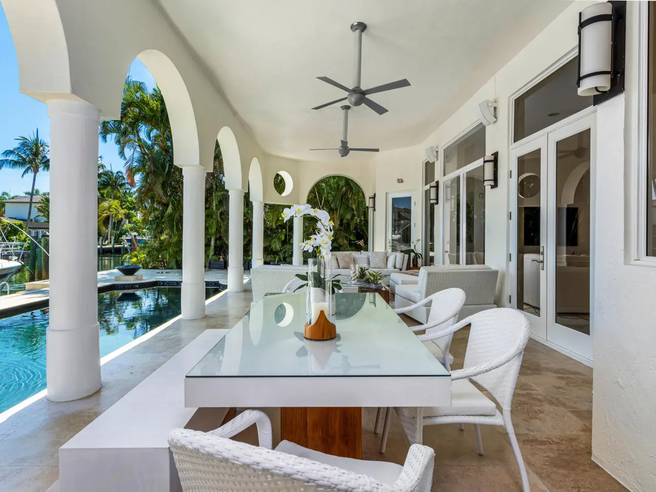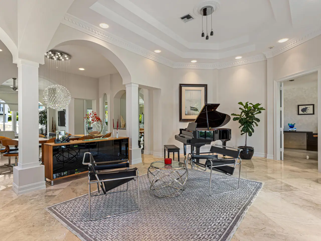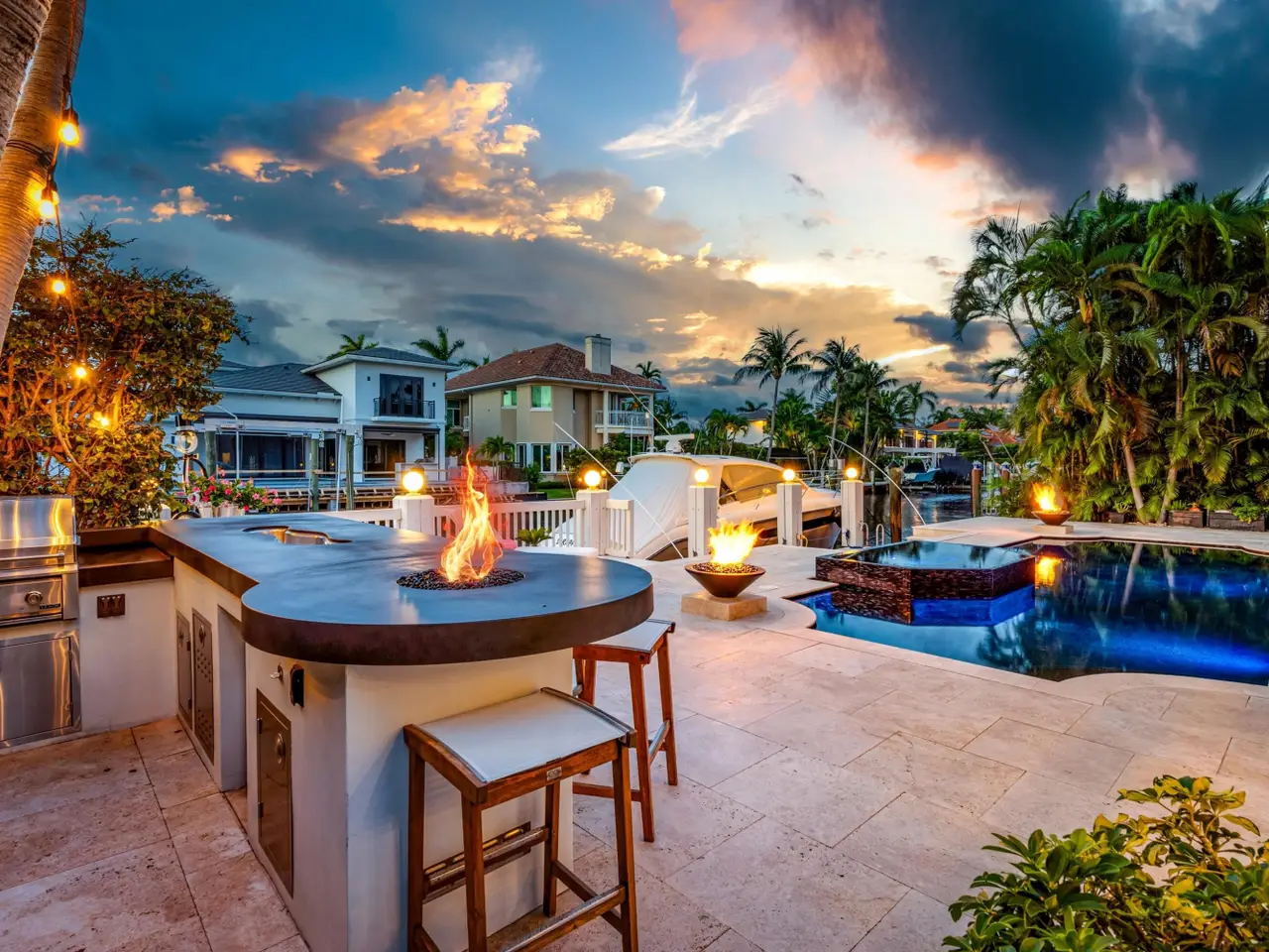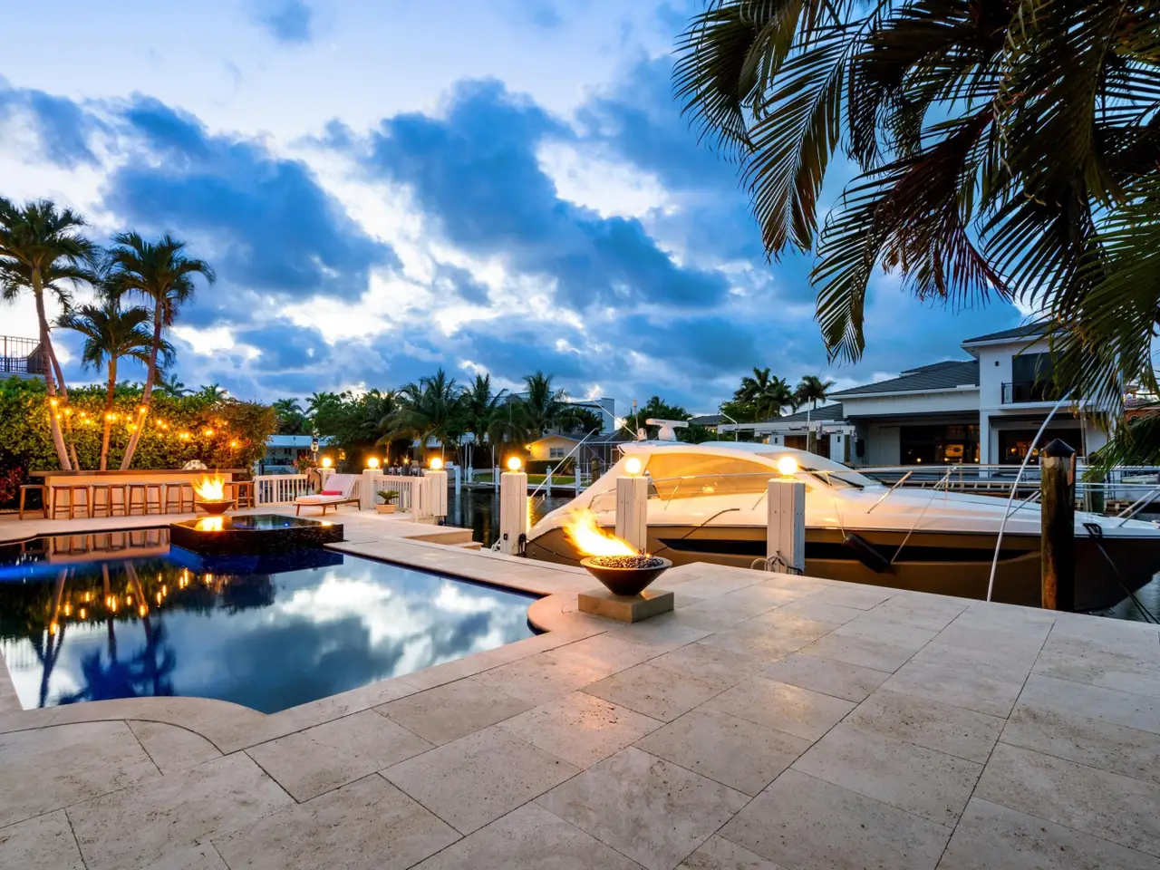 Luxe Boca Raton deepwater estate in the desirable Lake Rogers community fronts 80 feet on a deep-water canal with a dock offering easy ocean access, desirable for boaters. Interiors are peerlessly defined by grand architectural adornments, and the magnificent outdoor entertaining area centers on a sun-splashed pool with a spill-over spa bounded by an expansive patio with a wet bar and barbeque area.