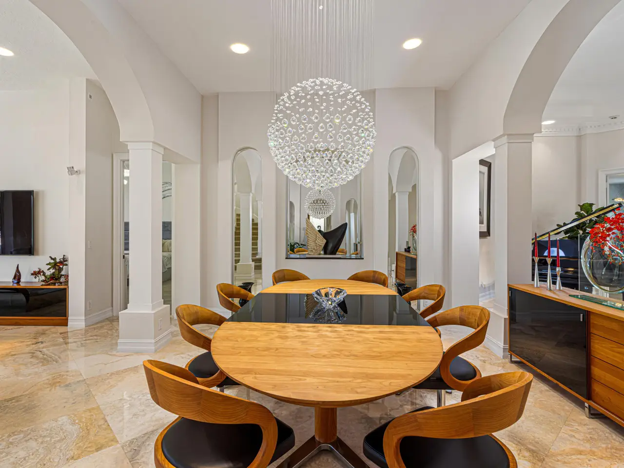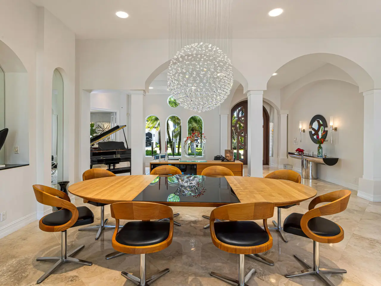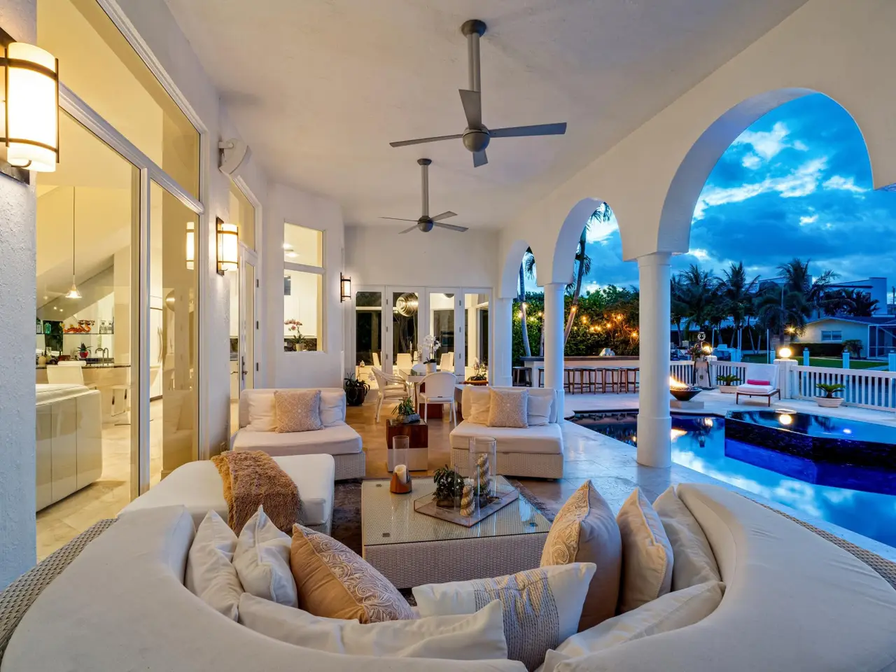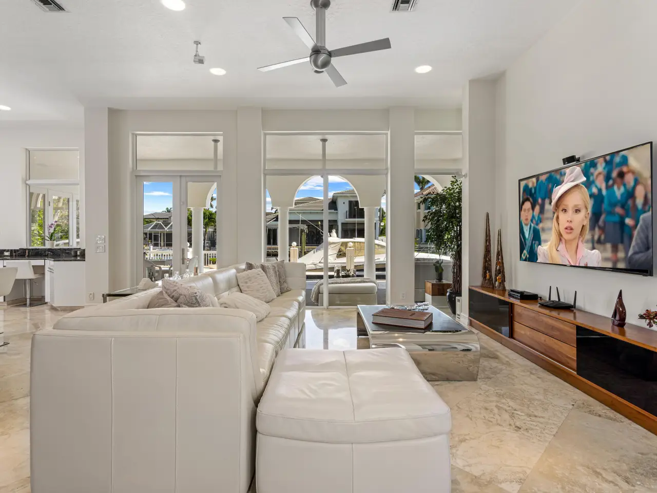 Luxe Boca Raton deepwater estate in the desirable Lake Rogers community fronts 80 feet on a deep-water canal with a dock offering easy ocean access, desirable for boaters. Interiors are peerlessly defined by grand architectural adornments, and the magnificent outdoor entertaining area centers on a sun-splashed pool with a spill-over spa bounded by an expansive patio with a wet bar and barbeque area.