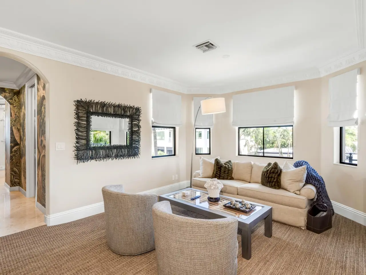 Welcome to your exquisite new residence, where luxury meets elegance. This meticulously maintained home is a must-see for any discerning buyer.Nestled on approximately 83 feet of waterfront in the prestigious Boca Harbour of Boca Raton, this Mediterranean estate offers direct ocean access without any fixed bridges.Spanning approximately 5,336 square feet, this stunning four-bedroom home features a breathtaking domed foyer with soaring 22-foot ceilings that flow into the spacious living room. The light-filled living area boasts floor-to-ceiling windows and a magnificent marble fireplace, seamlessly connecting to the separate dining room with picturesque water views.