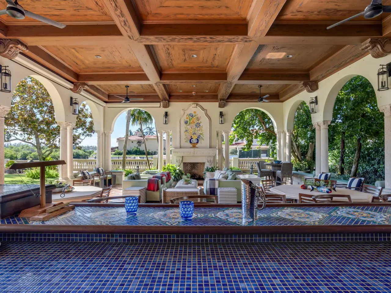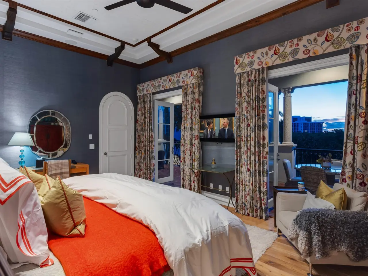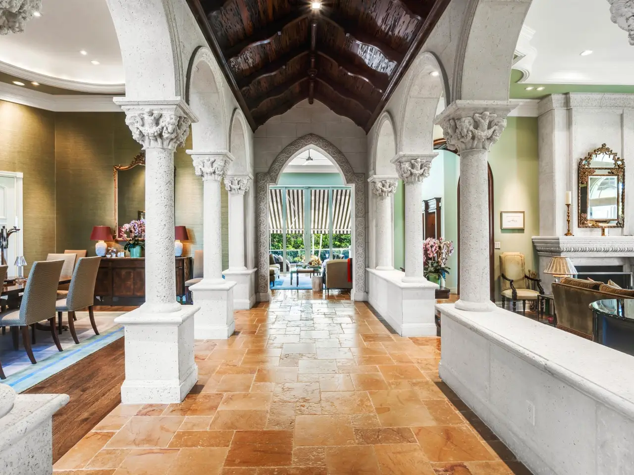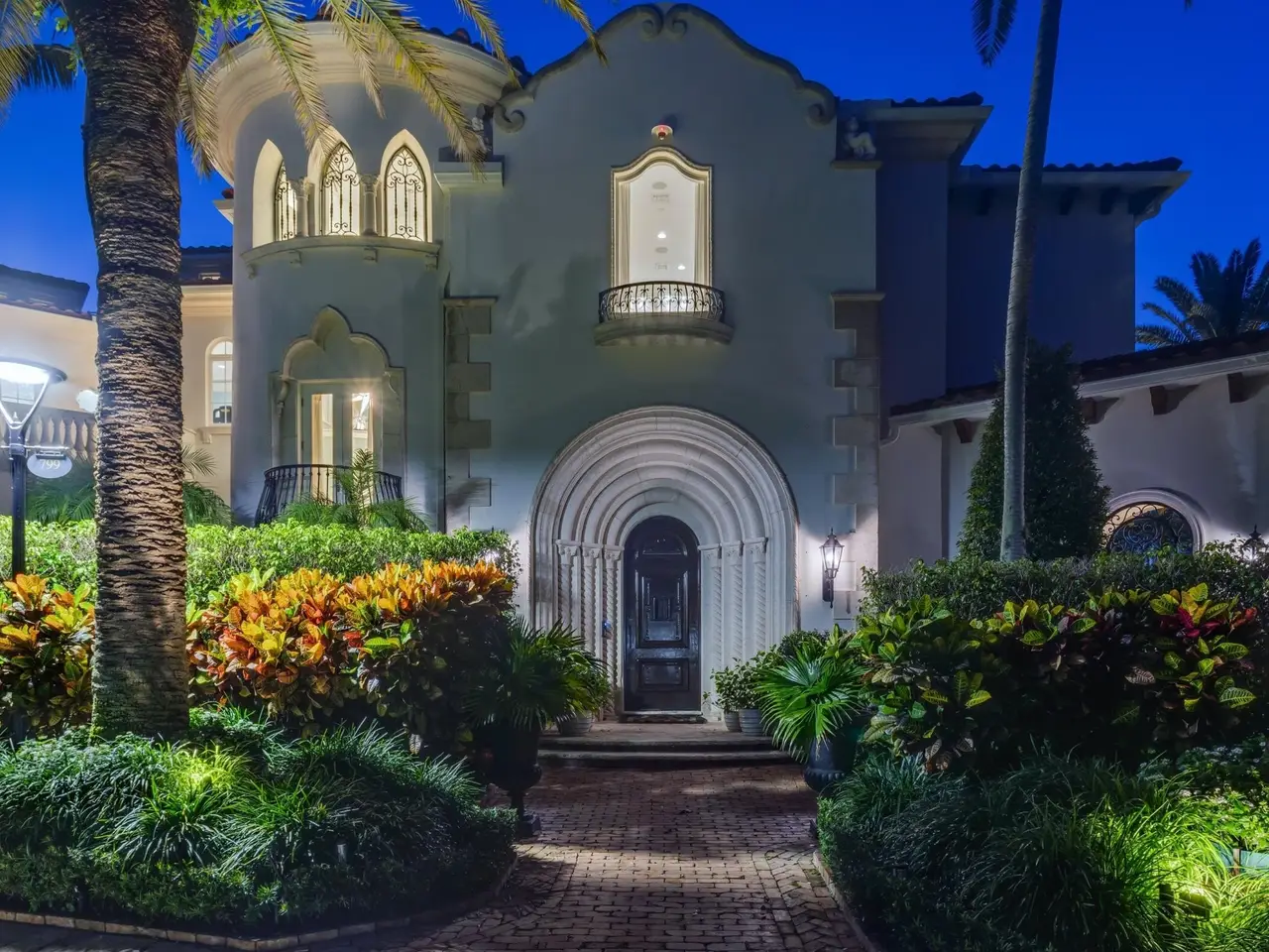 Palatial Palm Beach-inspired Sanctuary masterpiece originally built by Dan Swanson of Addison Development, with stately main house and separate guest/carriage house on 2 trophy southeast point lots surrounded by 350 +/- feet of secluded shoreline for multi-yacht dockage. Enter glamorous interiors featuring bespoke updates from a grand-scale foyer, formal living and dining rooms, newly updated Gourmet Island kitchen, adjacent English Club Room with pub and indulgent Primary quarters with dual spa-like baths and waterfront views.