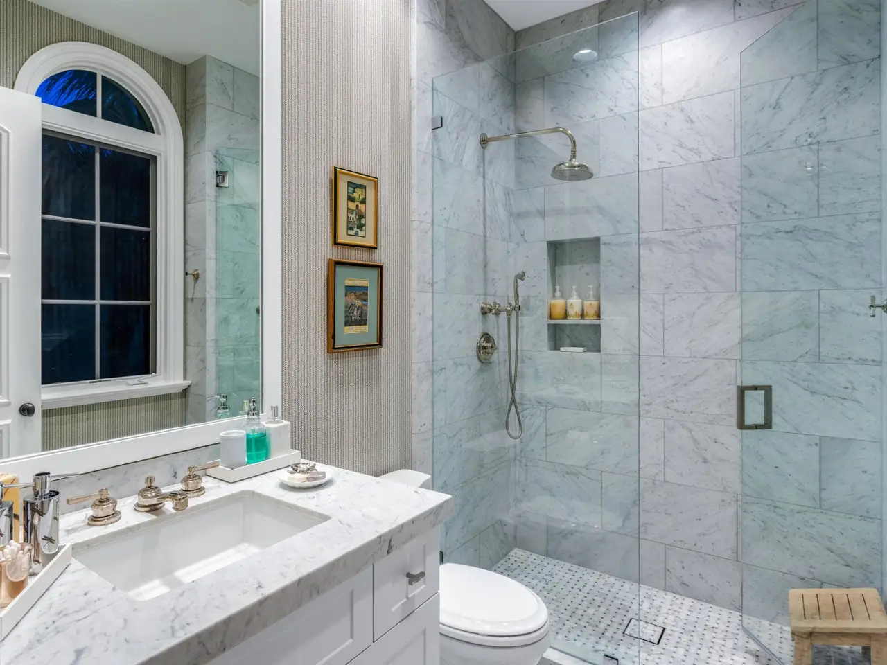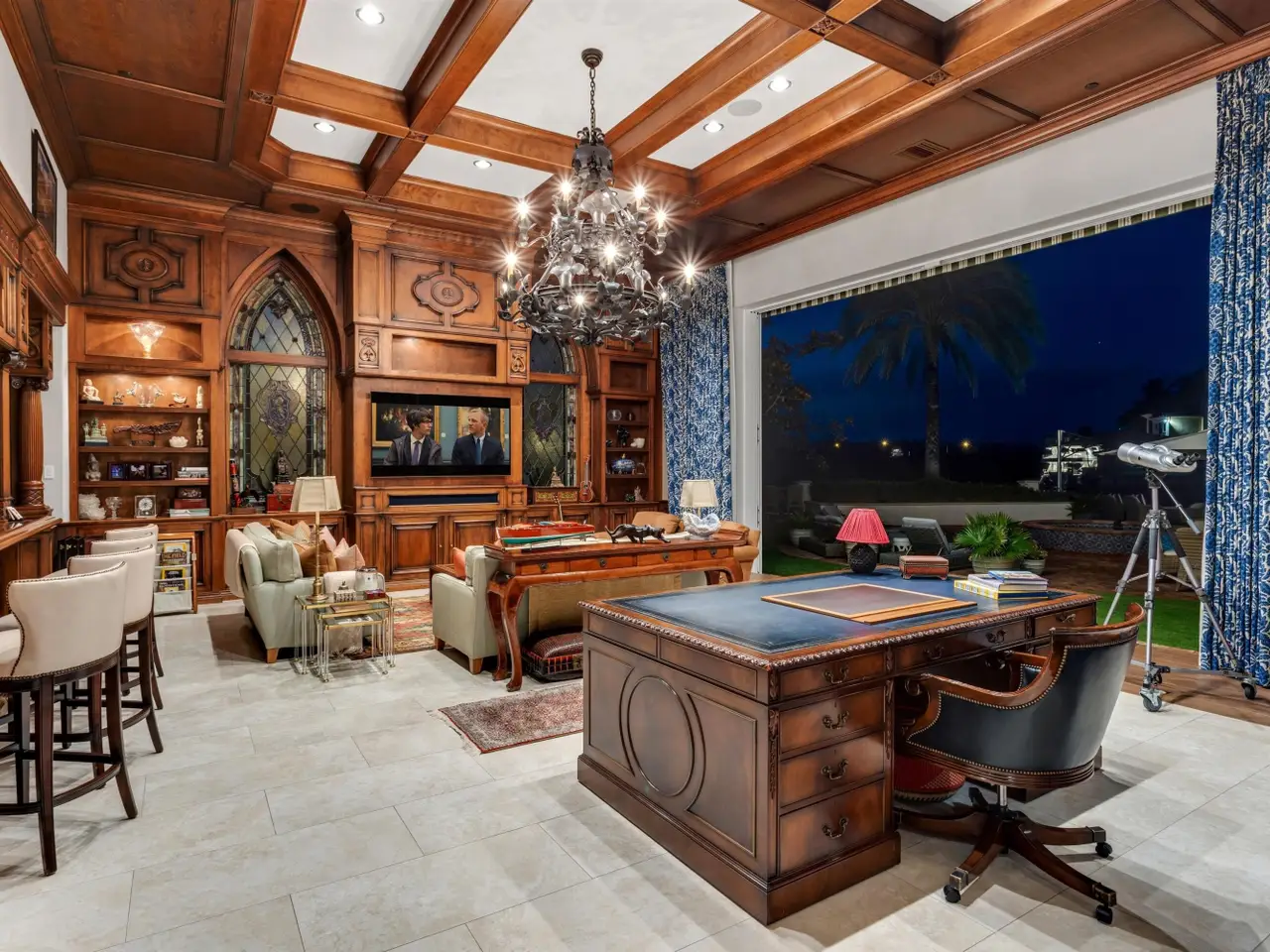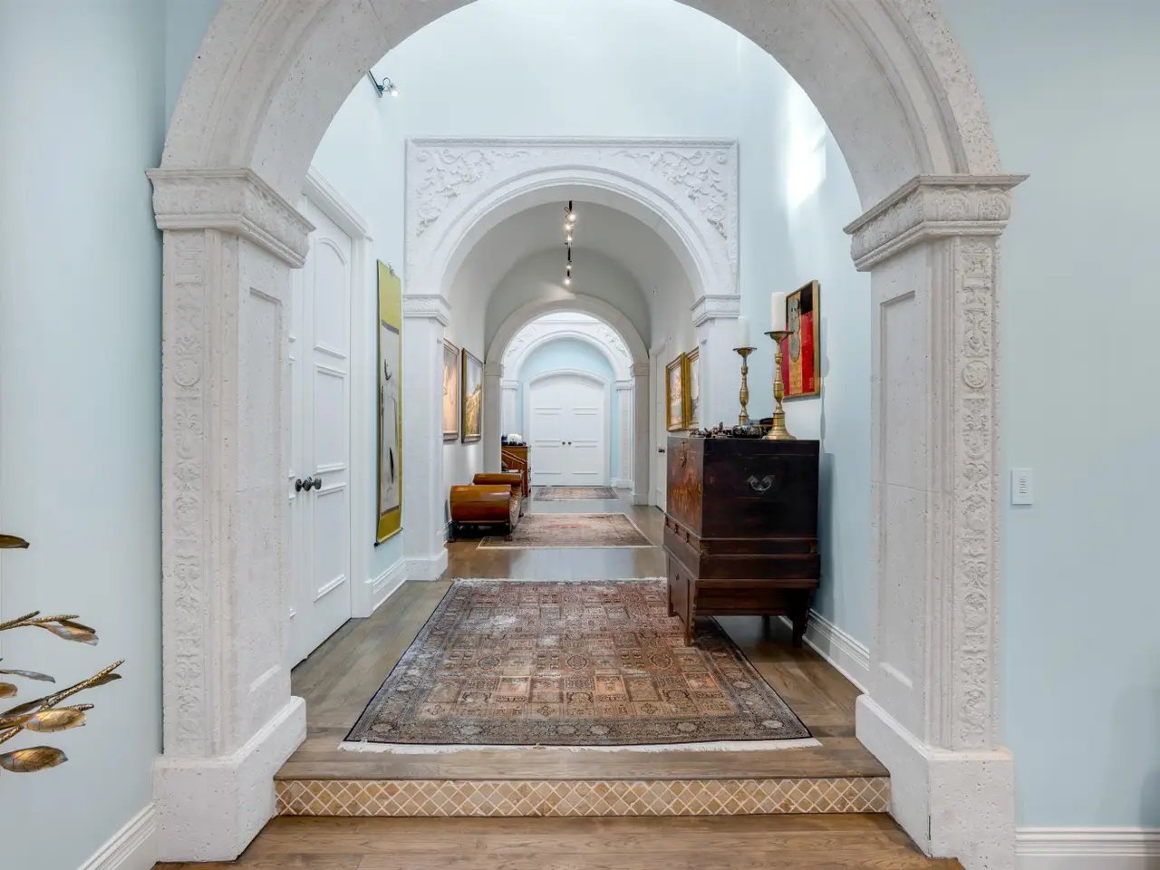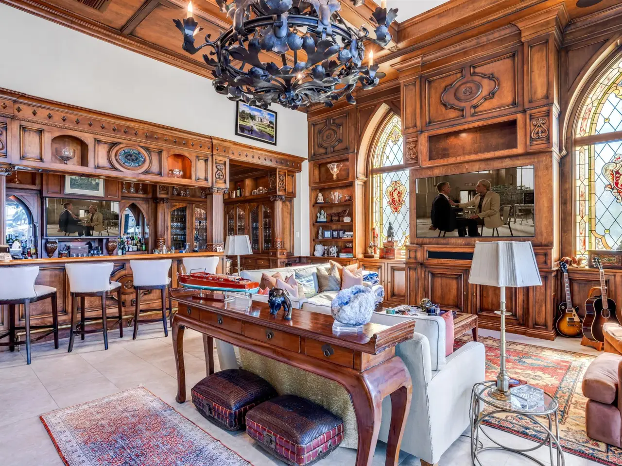 Palatial Palm Beach-inspired Sanctuary masterpiece originally built by Dan Swanson of Addison Development, with stately main house and separate guest/carriage house on 2 trophy southeast point lots surrounded by 350 +/- feet of secluded shoreline for multi-yacht dockage. Enter glamorous interiors featuring bespoke updates from a grand-scale foyer, formal living and dining rooms, newly updated Gourmet Island kitchen, adjacent English Club Room with pub and indulgent Primary quarters with dual spa-like baths and waterfront views.