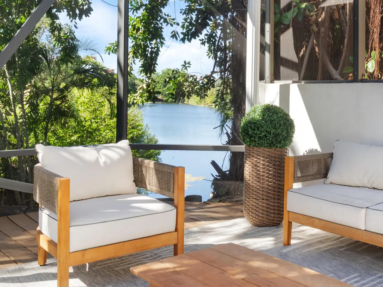 Swimmer's Dream Meets Artist's Retreat - Rare Custom Home in East Boca Raton. This beautiful two-story home inspires creativity, celebrates Florida living, and offers unique features in a one-of-a-kind Key West-style custom home. Located on a peaceful waterfront lot in East Boca Raton, this elegant two-story residence is designed for both function and flair, with thoughtful spaces and architectural details throughout. The home was crafted to be open, inviting, and joyful. At the center of it all is a fully screened, lap pool with a rare 9-foot deep end, a true swimmer's paradise. Whether you love to dive, swim laps, or host unforgettable pool parties, this pool is a feature you simply can't recreate today.